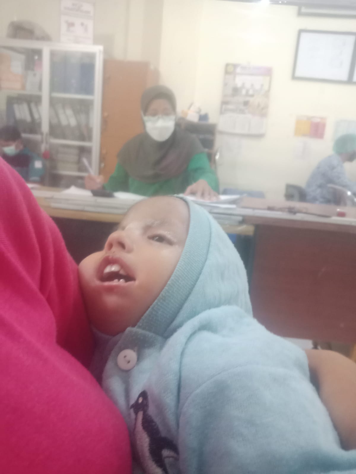 Dari kemarin Anisa mengalami demam kejang, namun tidak lama. Kepalanya menghitam, tapi alhamdulillah berat badannya sudah mulai ada kemajuan, naik 7,5 kg.