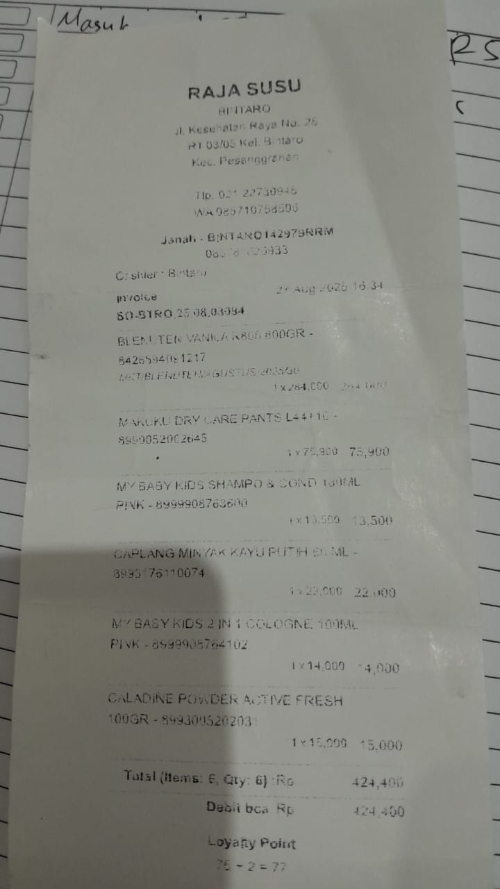 Dana digunakan untuk 1. Reimburse Susu, minyak telon dan kebutuhan lainnya Rp424.400 2. Reimburse Obat Rp411.390 3. Reimburse Susu Blenuten Rp506.0002025-09-26 10:12:02