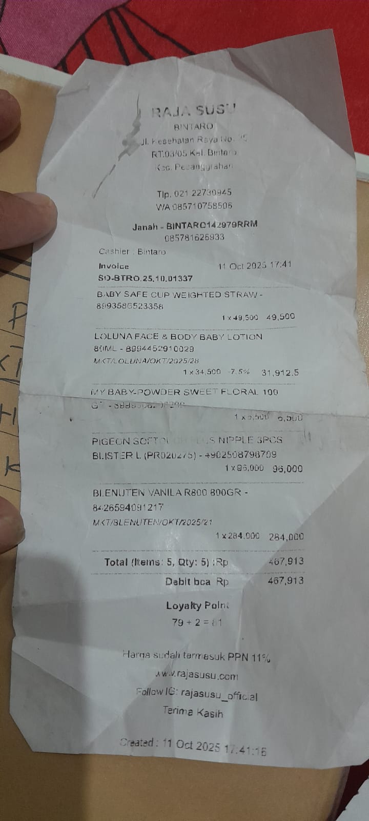Dana digunakan untuk 1. Reimburse Susu,minyak kayu putih dan lainnya Rp378.000 2. Reimburse Susu,bedak bayi,dot dan botol susu Rp467.913 3. Reimburse vitamin,obat batuk dan lainnya Rp224.000 4. Reimburse obat rutin dr rs harapan kita Rp343.390 5. Reimburse susu blenuten Rp284.0002025-10-29 10:37:24