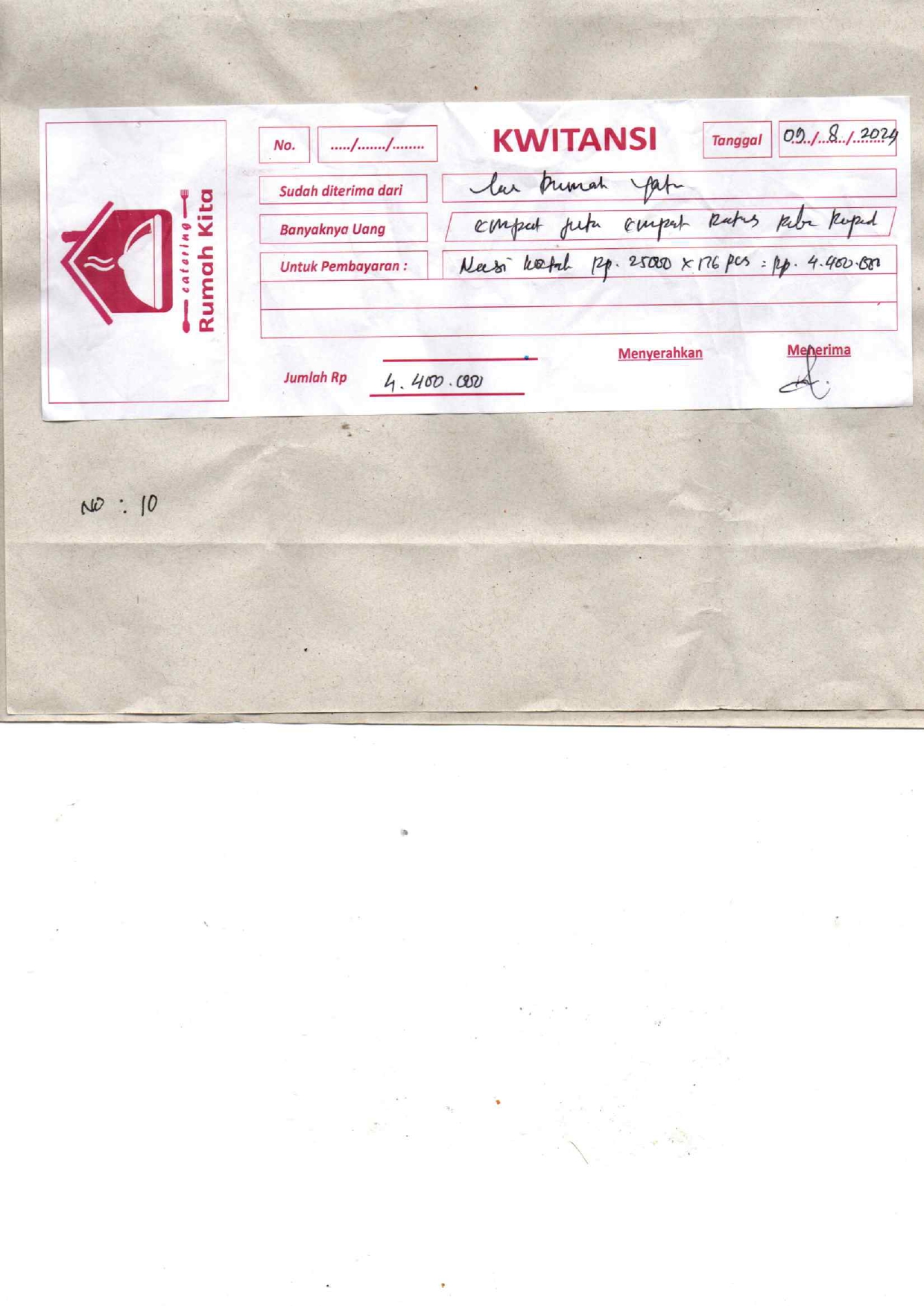 Dana digunakan untuk 1. Nasi Kotak Rp25.000 x 176pcs Rp4.400.6512024-10-29 09:04:34