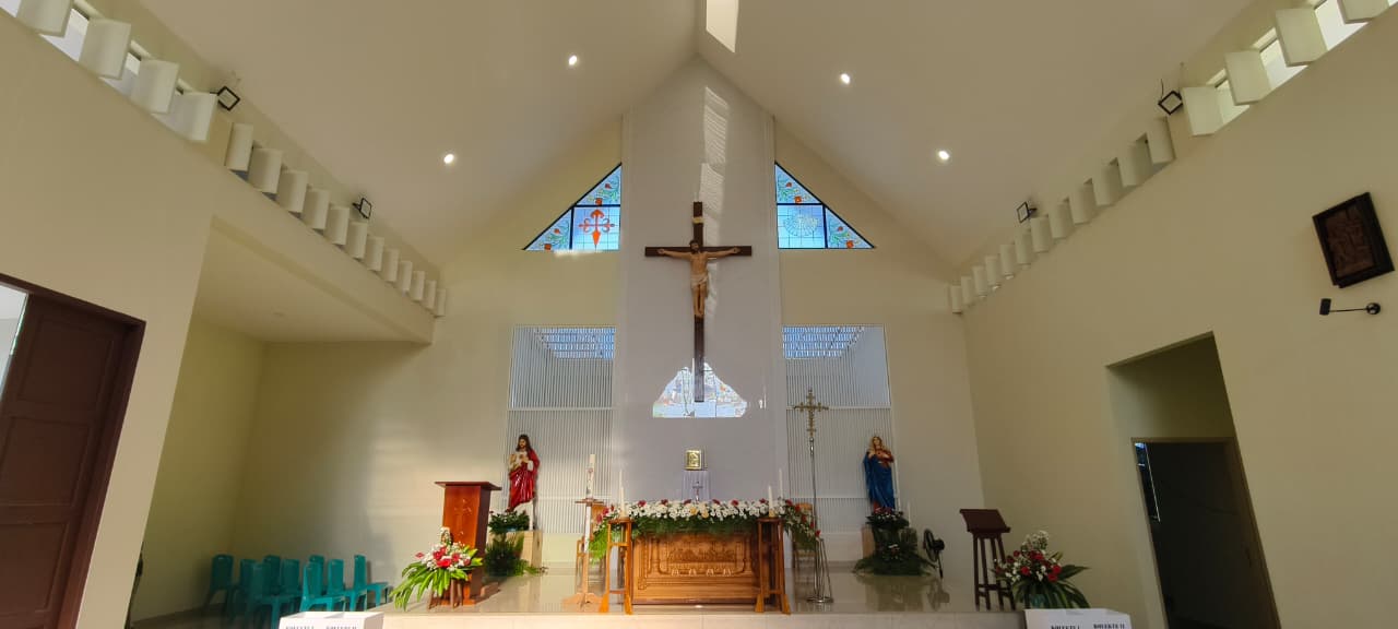 Luas gereja 6x8 meter, ukuran yang seharusnya hanya bisa menampung 20 orang saja. Tapi umat katolik yang hadir setiap minggunya bisa mencapai 50 orang, antusias yang sangat luar biasa. Bisa dibayangkan bukan bagaimana mereka ibadah?