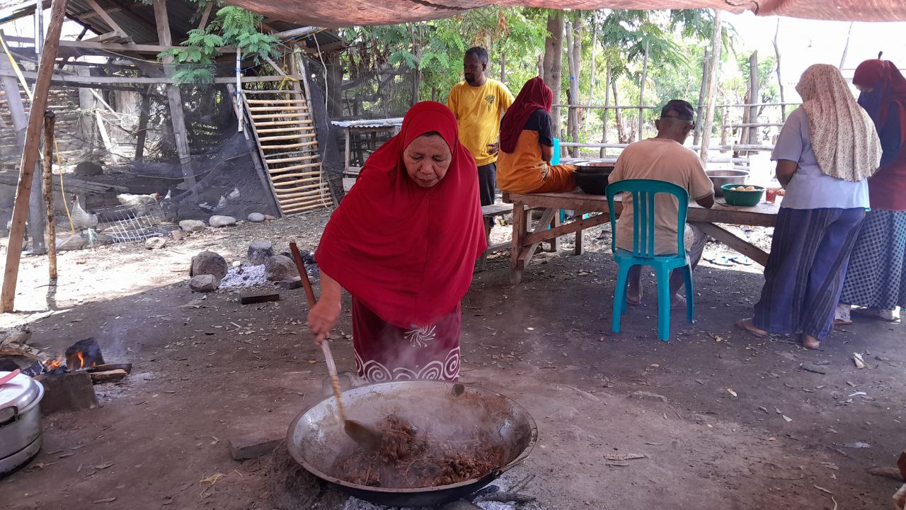 Sesampainya di lokasi, bahan-bahan tersebut langsung diolah oleh para ibu di sana. Karena tidak ada kompor gas, mereka menggunakan kayu dan kompor minyak untuk memasak.