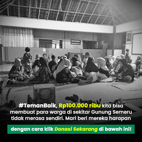 #TemanBaik, Rp100 ribu kita bisa membuat para warga di sekitar Gunung Semeru tidak merasa sendiri. Mari beri mereka harapan dengan cara klik Donasi Sekarang di bawah ini!