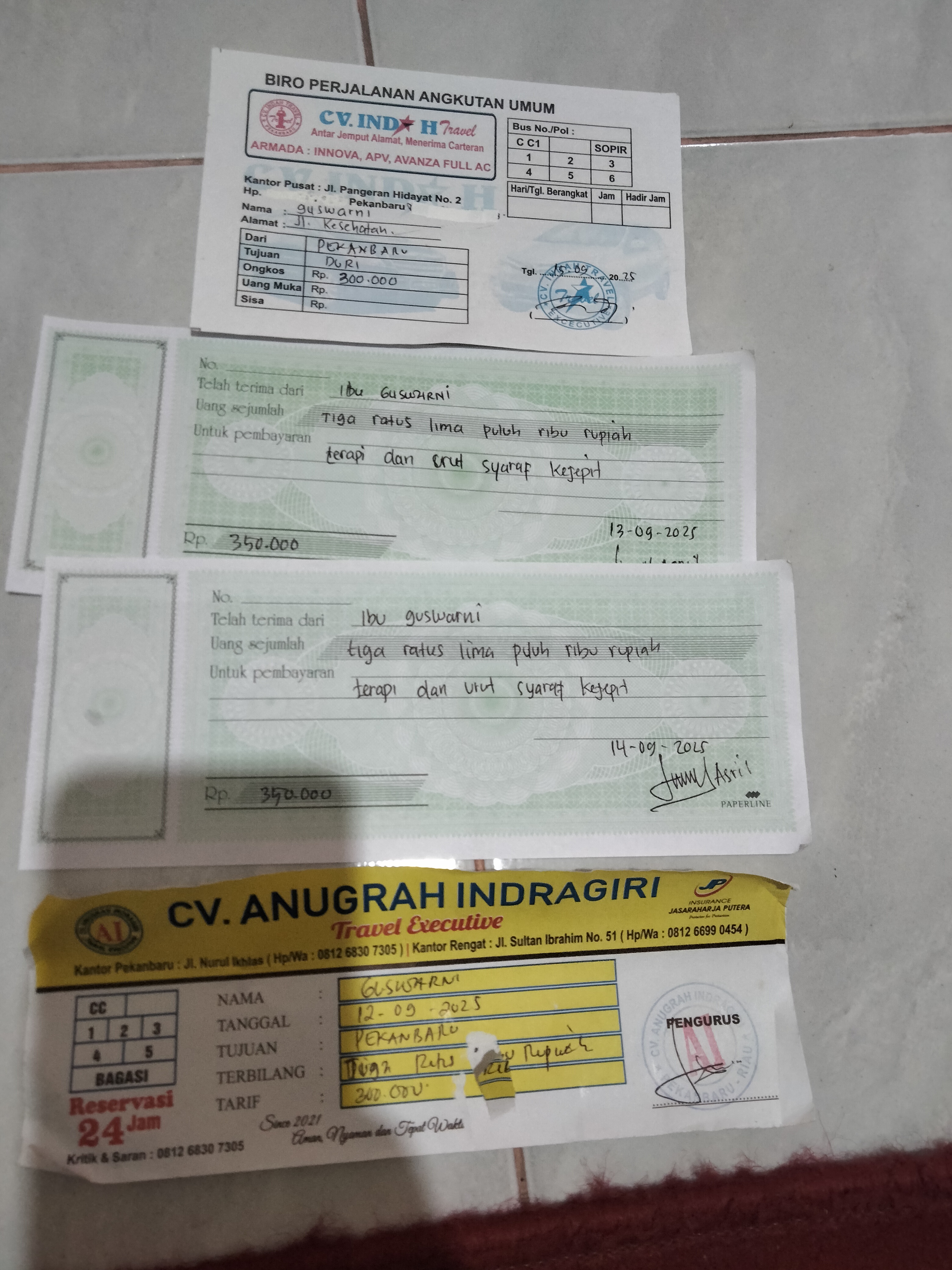 Dana digunakan untuk transportasi Travel ke RS Pekanbaru PP Rp600.0002025-10-30 14:45:52