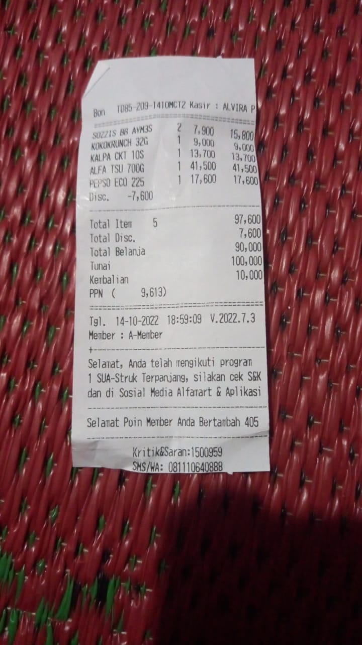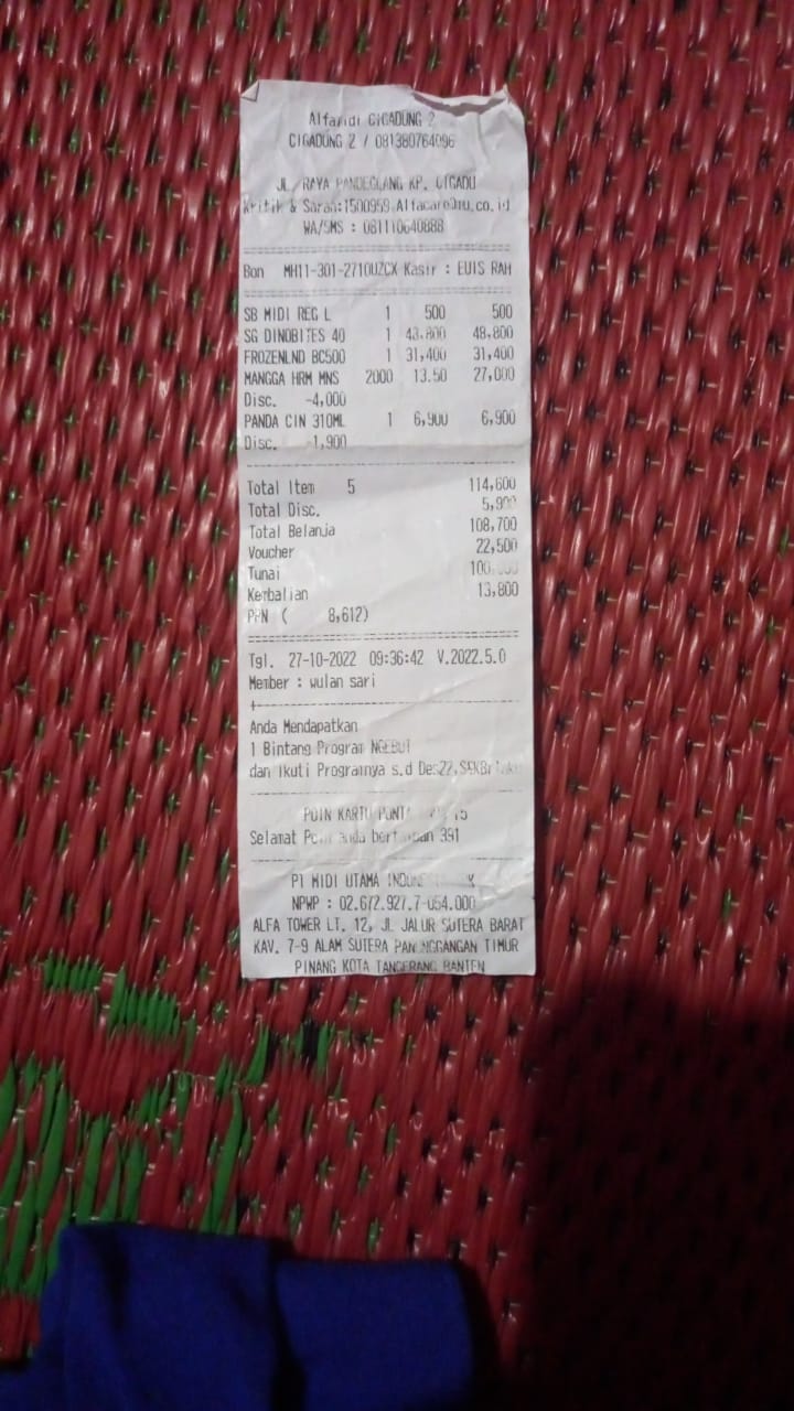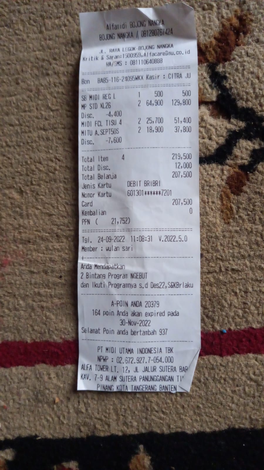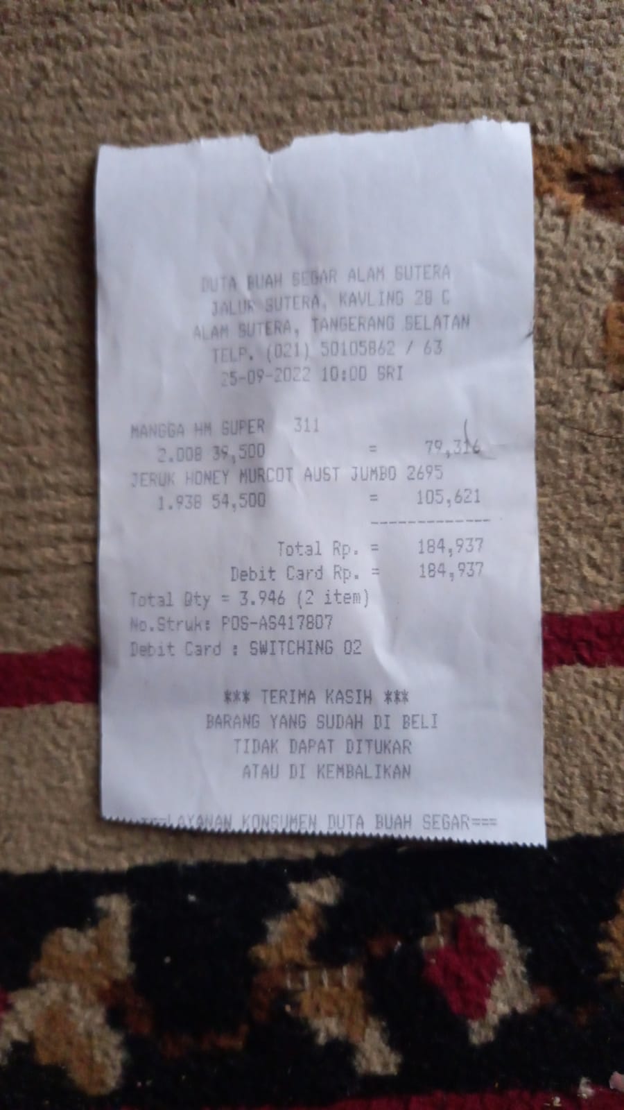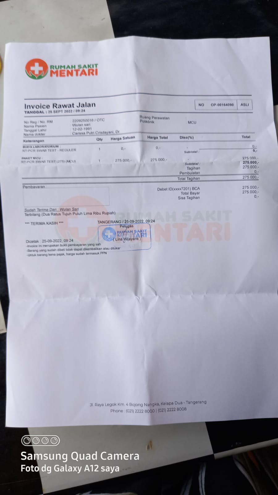 Dana digunakan untuk: 1. Untuk pembelian susu pediasure complete 850 gr @298.000×3 kaleng= Rp894.000 2. Mamy poko pants xl 26 @57.000× 2= Rp114.000 3. Tisu kering alfamidi @25.000×2= Rp50.000 4. Swab antigen @99.000×1= Rp99.000 5. Transportasi dari Tangerang ke RS kurang lebih 2 jam untuk 2× kontrol (pergi 154.000, pulang 194.500, pergi 166.000, pulang 229.000, total= Rp743.500 6. Untuk membeli buah mangga 2 kg×39.500= Rp79.000 7. Untuk biaya pendamping 4 hari2022-10-11 17:05:44