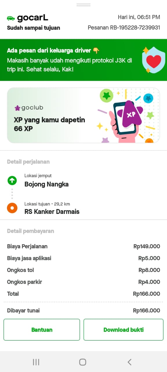 Dana digunakan untuk: 1, Biaya transportasi naik gocar dari Tangerang ke RS Kanker Dharmais jarak kurang lebih 2 jam untuk PP 150.000 × 2 jadi 300.000 untuk 2 × kontrol= Rp600.000 2. Swab PCR 1 kali Rp275.000 3. Susu pediasure complete rasa vanila 850 gram × 2 kaleng Rp618.000 4. Pampers mamy poko XL 26 × 2= Rp114.000 5. Tisu basah mitu baby antiseptic × 2= Rp30.000 6. Tisu kering alfamidi × 2= Rp40.000 7. Biaya pendamping 2 orang × 50.000 2xmakan= Rp100.000 × 6 hari, alasan 6 hari karna kem2022-09-22 18:19:12