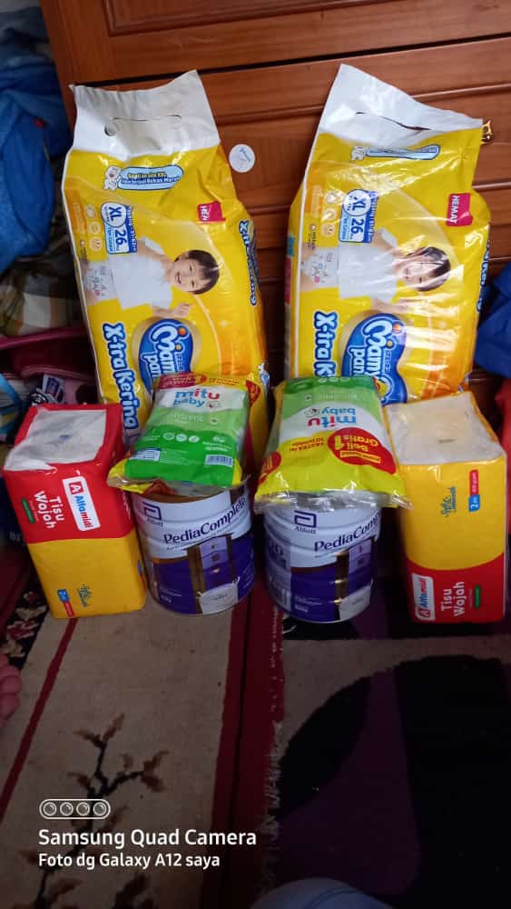 Kami mau mengabarkan kalau donasi sudah digunakan dengan baik untuk membeli kebutuhan haikal seperti diapers, buah-buahan dan lain-lain.