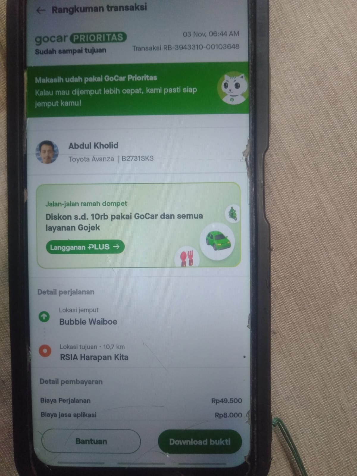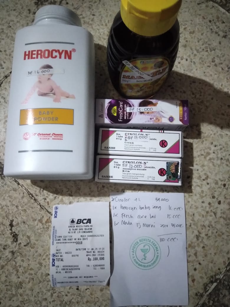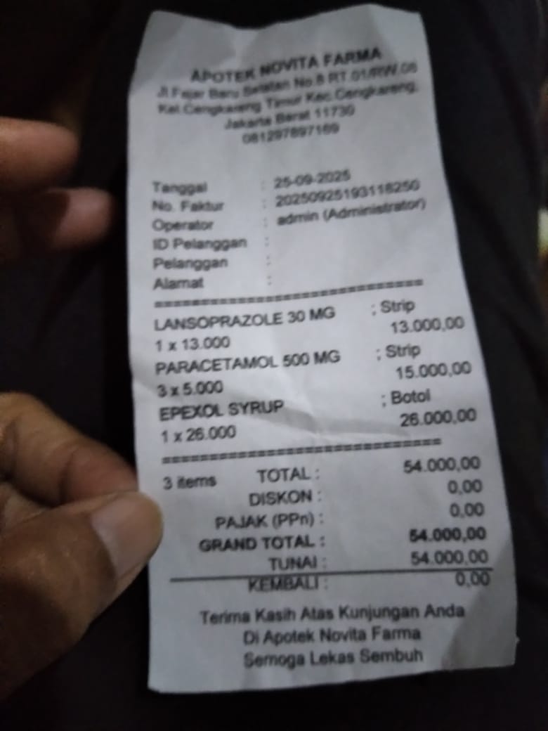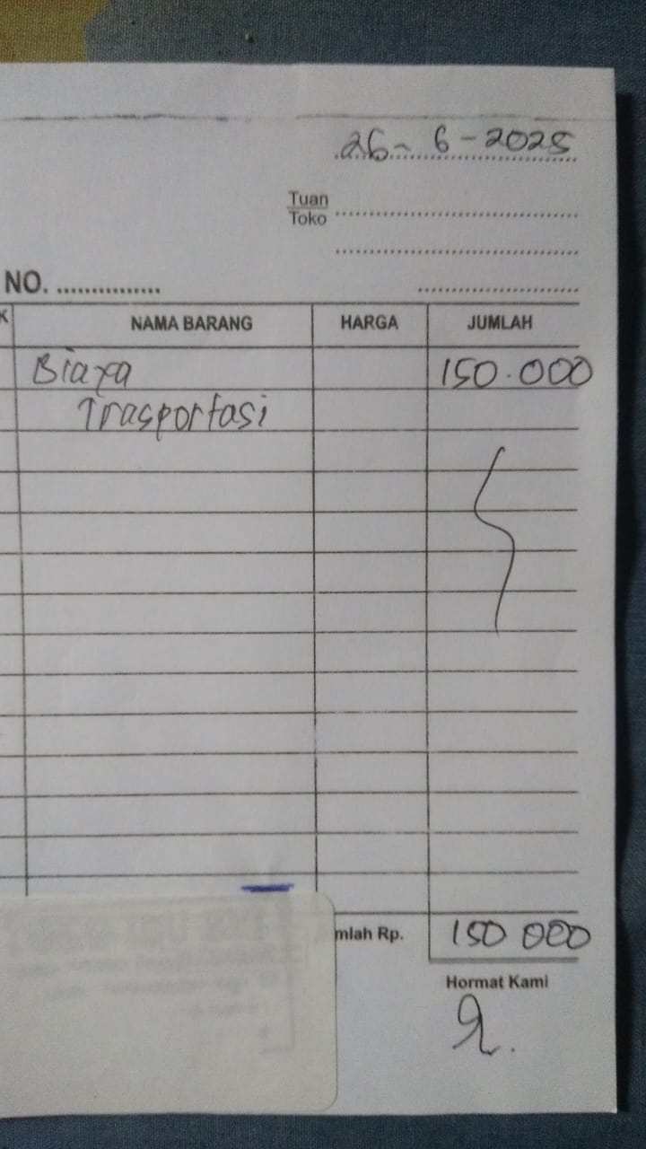Dana digunakan untuk 1. Transportasi online ke RS harapan kita Rp150.000 2. Obat gatal(salep) Rp17.000 3. Konsumsi saat kontrol Rp30.0002025-06-26 11:09:39
