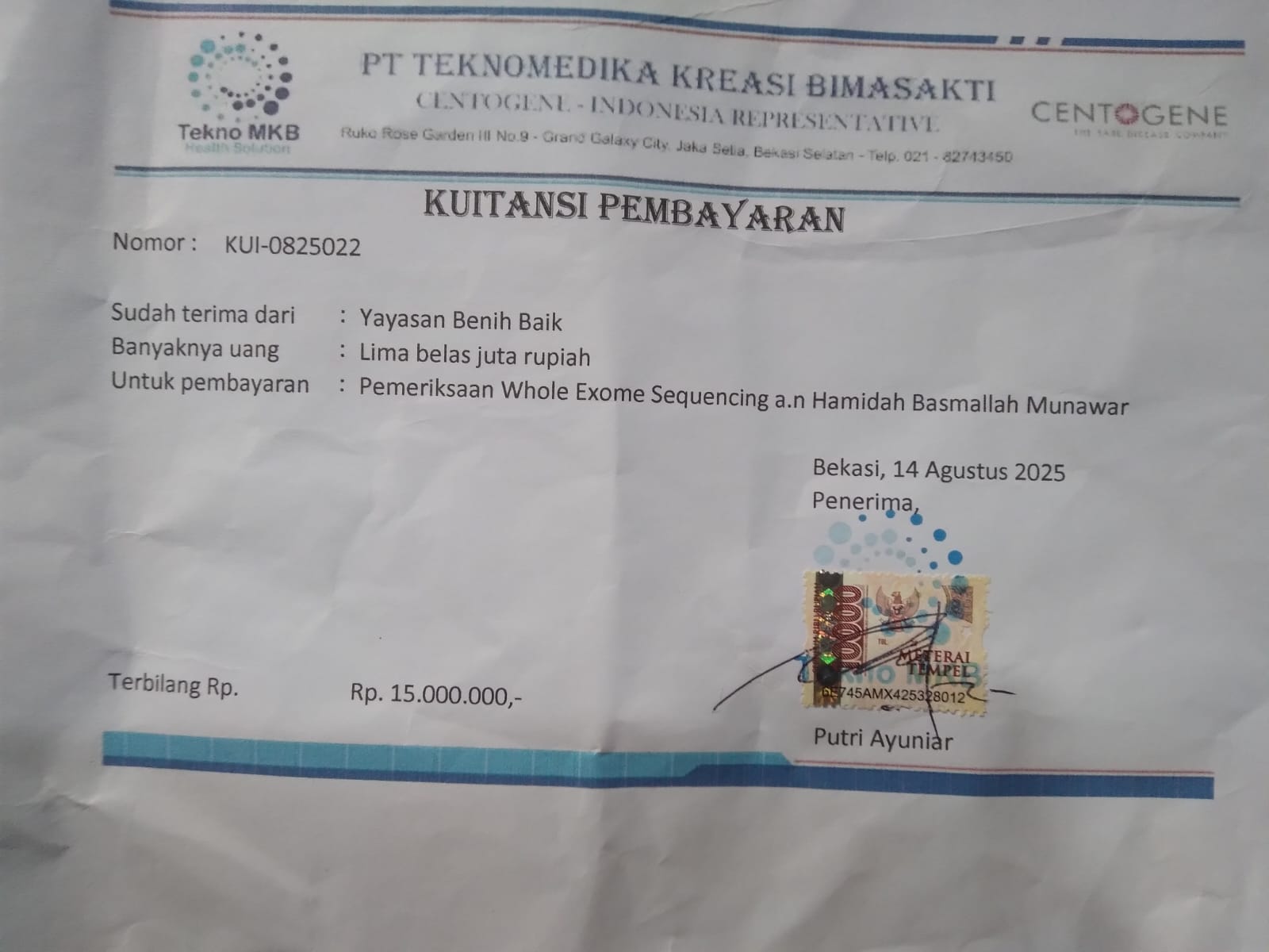 Dana digunakan untuk Pemeriksaan Whole Exome Sequencing a.n Hamidah Basmallah Munawar2025-08-18 09:19:03