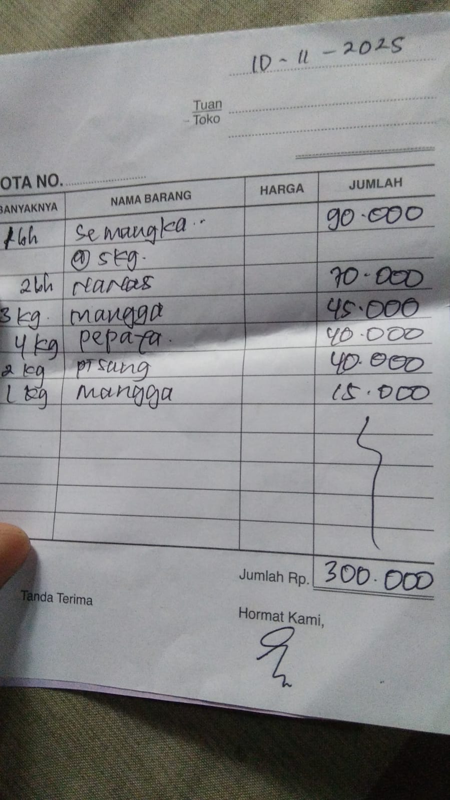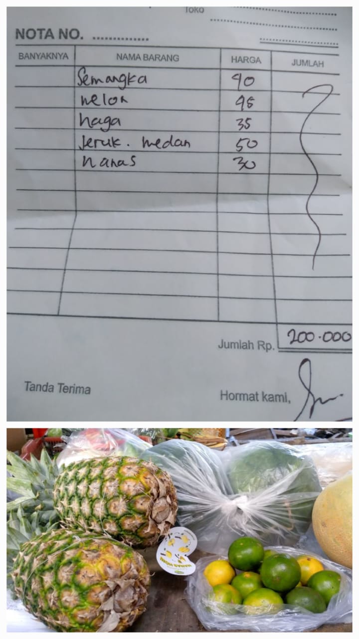 Dana digunakan untuk 1. Susu uht 4 dus Rp400.000 2. Madu Rp50.000 3. Salep Rp50.000 4. Buah semangka Rp74.0002025-07-24 09:15:12