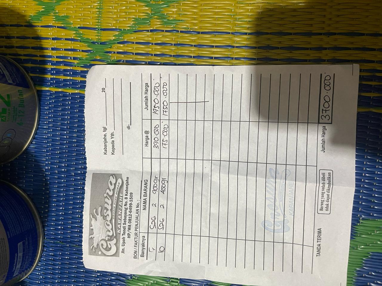1. Susu S26 gold 900g Rp370.000 x 6 pcs = Rp2.220.000