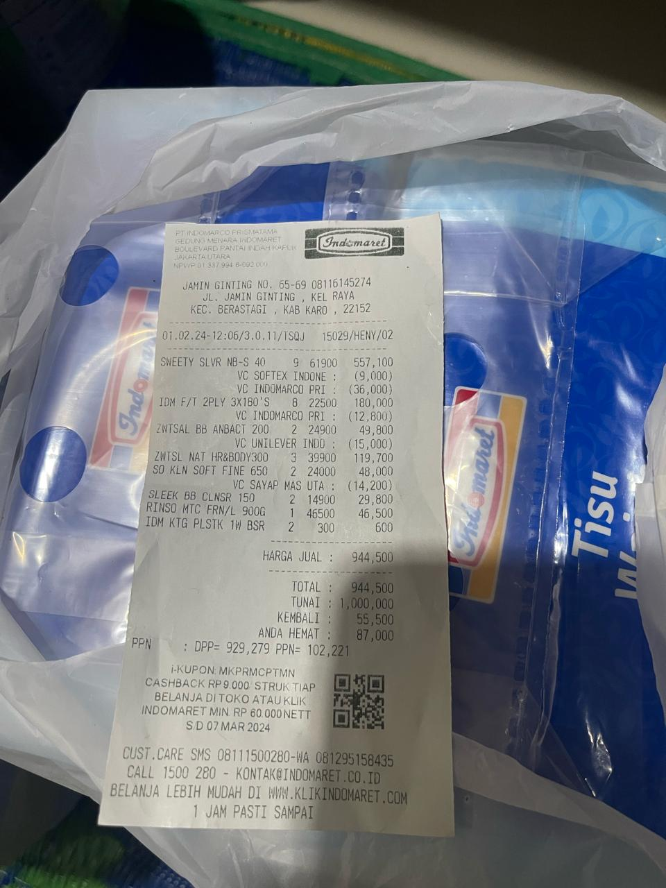 4. Tisu kering indomaret harga Rp25.000 x 8 pcs = Rp200.000