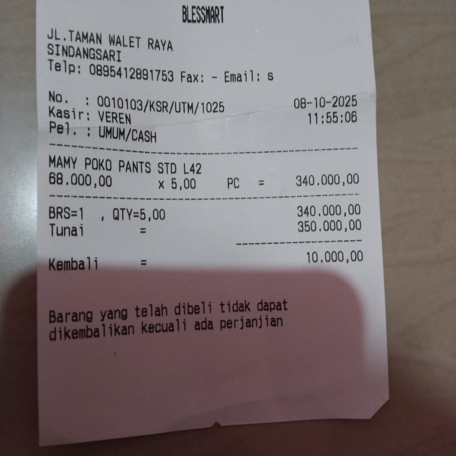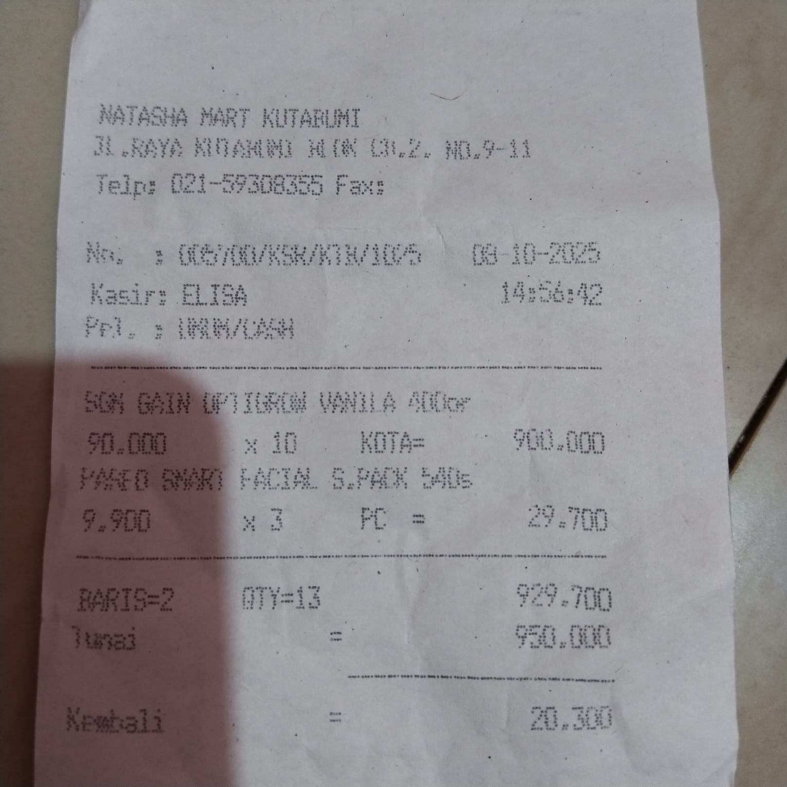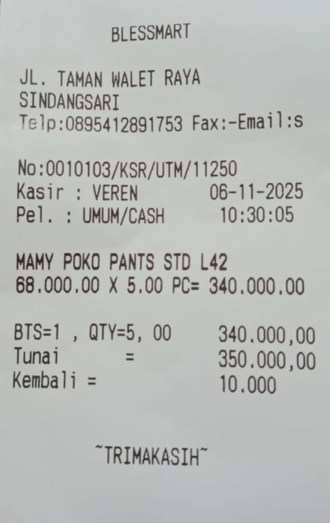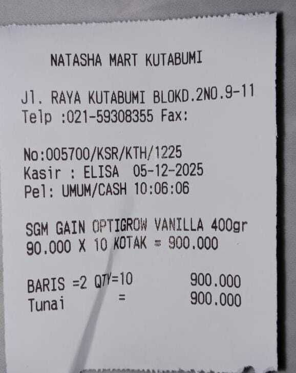 Dana digunakan untuk 1. Susu SGM Optigrow 400gr Rp91.000 x 10kotak = Rp. 910.000 2. Pampers mamypoko isi 42pc Rp69.000 x 5 ball = Rp. 345.000 3. Tabung Oksigen 1 M3 lengkap Rp. 618.000 4. Reimburse Nebulizer omron Rp. 398.0002025-10-09 10:19:03