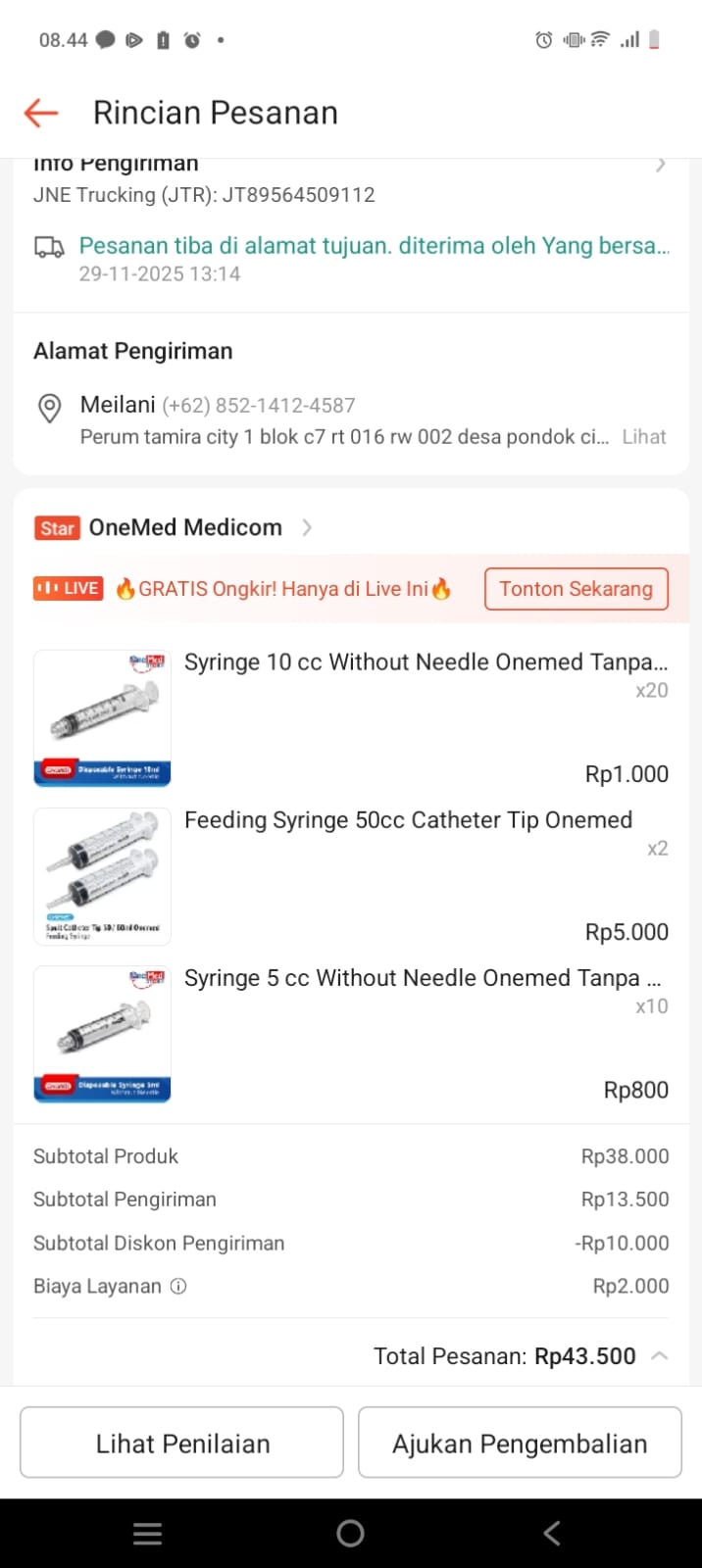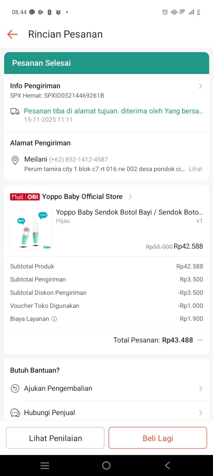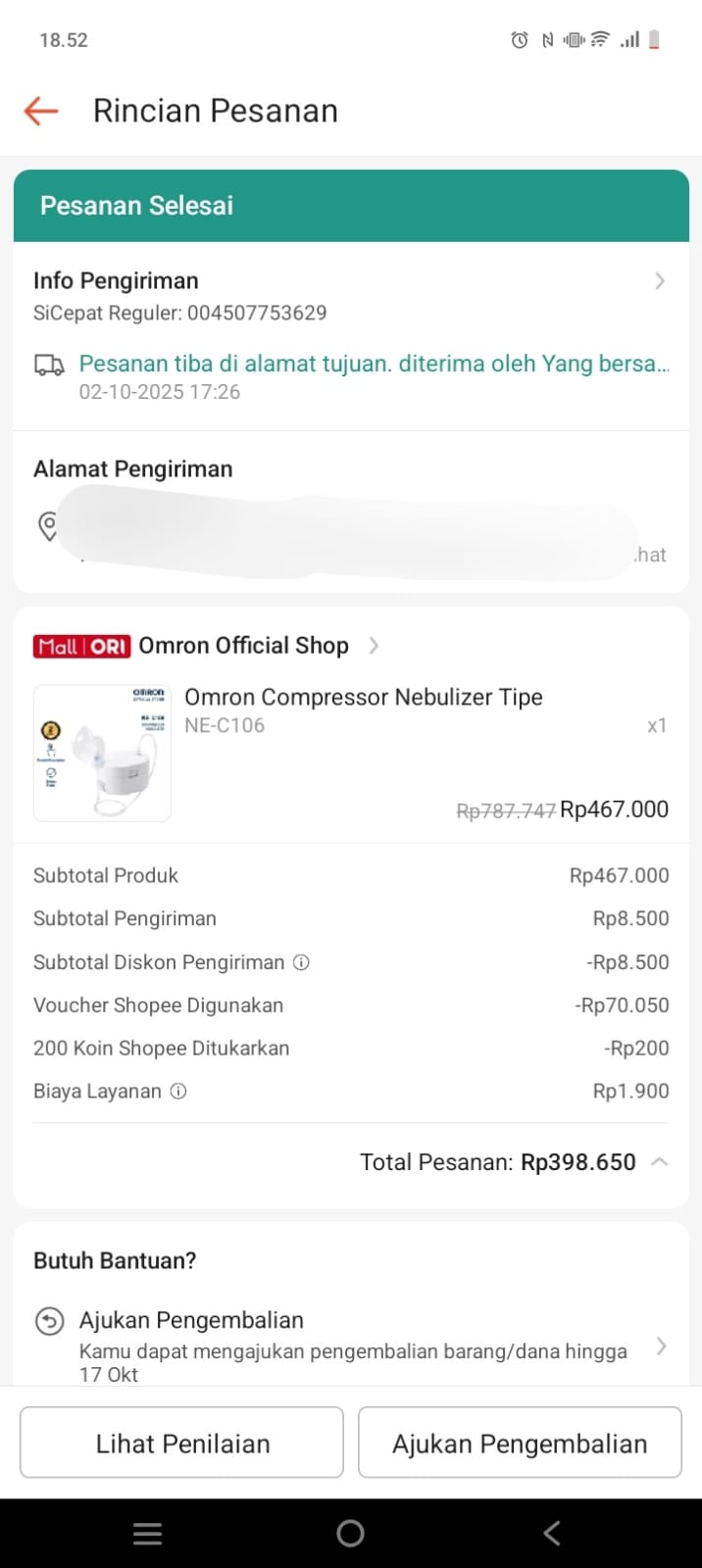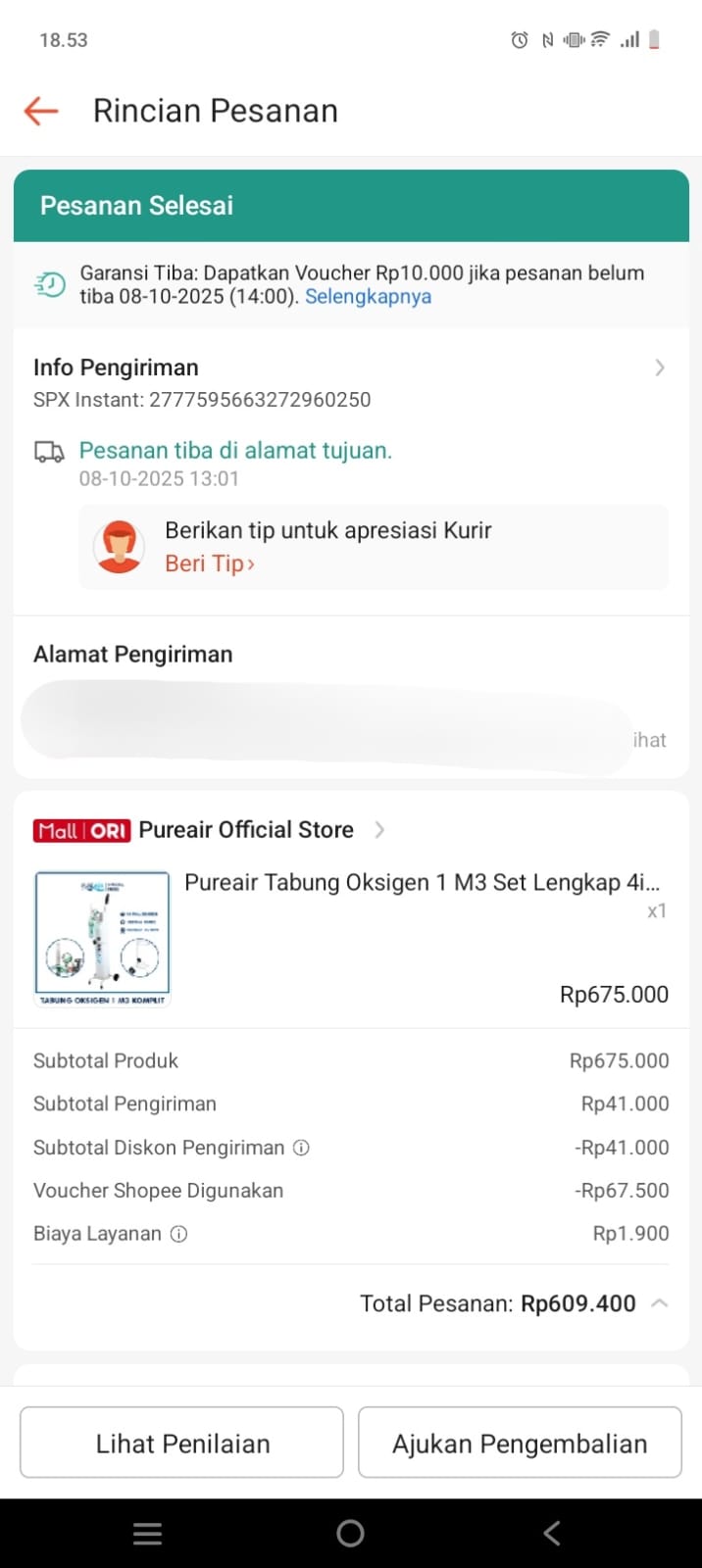 Dana digunakan untuk 1. Susu SGM Optigrow 400gr Rp91.000 x 10kotak = Rp. 910.000 2. Pampers mamypoko isi 42pc Rp69.000 x 5 ball = Rp. 345.000 3. Tabung Oksigen 1 M3 lengkap Rp. 618.000 4. Reimburse Nebulizer omron Rp. 398.0002025-10-09 10:19:03