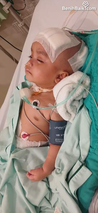 Di usianya yang baru 40 hari, Muhammad Hisyam Al Najmi (1 thn), tiba-tiba mengalami demam tinggi disertai kejang hebat. Saat hasil pemeriksaan keluar, anakku mengalami hidrosefalus. Aku tidak tahu sepenuhnya penyakit itu, tapi hatiku dipenuhi ketakutan.