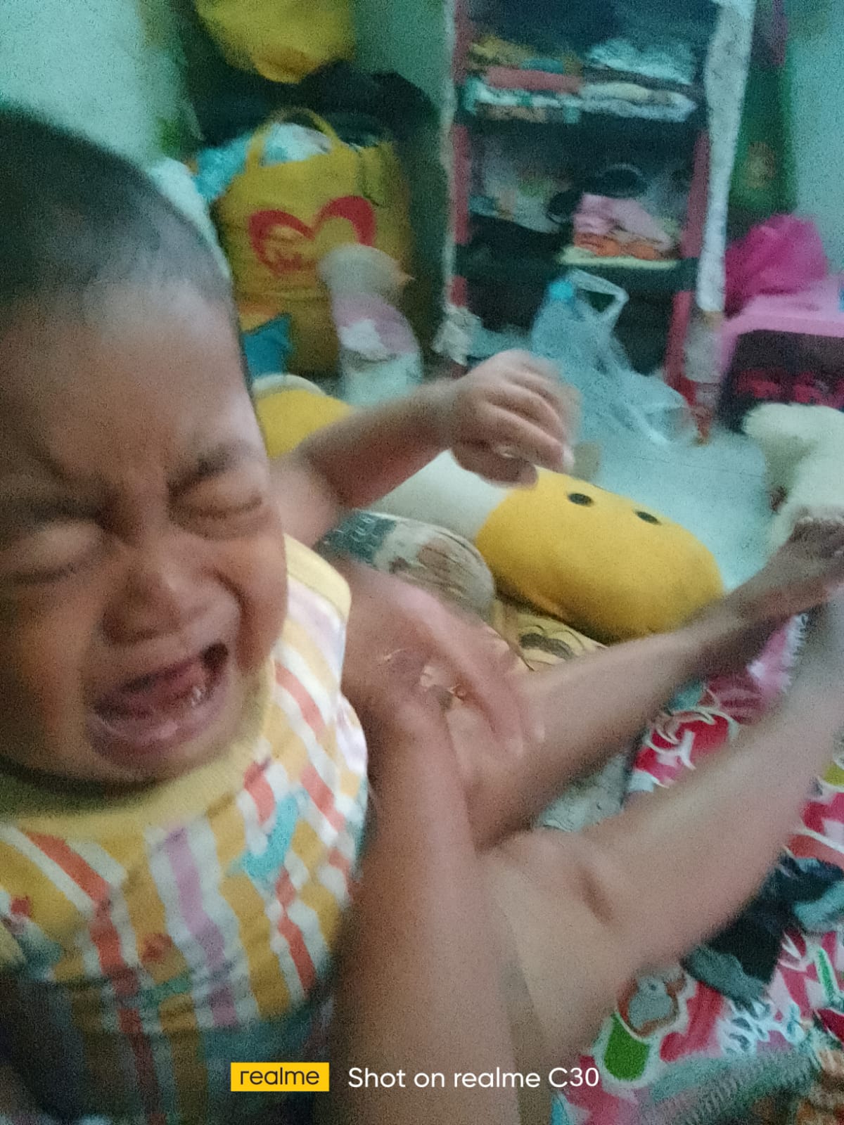Sementara itu, kondisi anakku semakin memprihatinkan! Mata dan tubuhnya tampak kuning, perutnya membesar dan kerap gelisah. seharusnya ia sudah bisa merangkak, bahkan belajar berdiri. Namun, anakku belum mampu melakukan apa pun selain terbaring lemah.