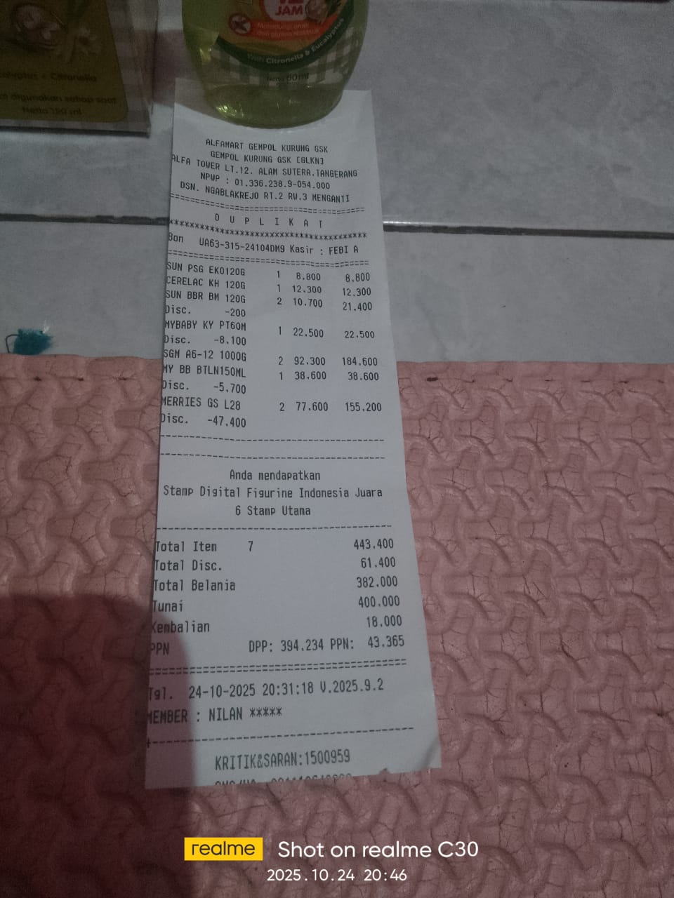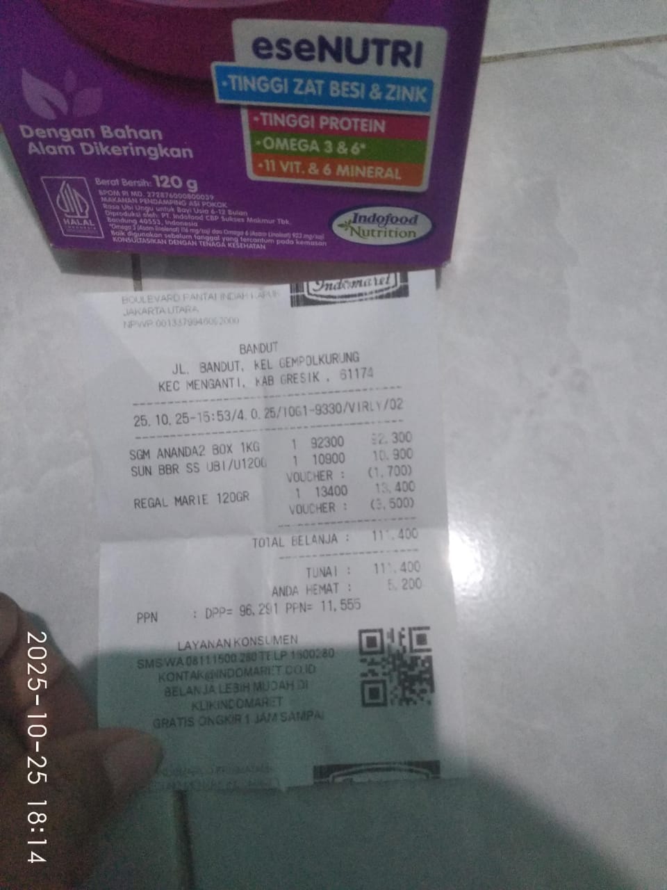 Dana digunakan untuk 1. Sgm again 0_12bln 400gr Rp110.000 x 2 = Rp220.000 2. Vipalbumin 1 strip isi 10 capsul Rp110.000 3. Pampres 3ball Rp60.000 x 3 = Rp180.0002025-11-18 10:25:17