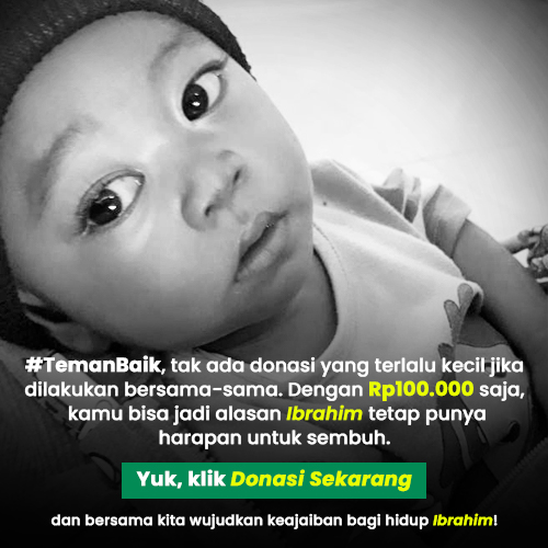 #TemanBaik, tak ada donasi yang terlalu kecil jika dilakukan bersama-sama. Dengan Rp100.000 saja, kita bisa jadi alasan Ibrahim tetap punya harapan untuk sembuh. Yuk, klik Donasi Sekarang dan bersama kita wujudkan keajaiban bagi hidup Ibrahim!