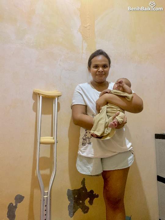“Kondisi fisikku yang hanya memiliki satu kaki, membuat suamiku harus mengorbankan pekerjaannya demi mendampingi anak kami yang sedang berjuang melawan sakit jantung. Kini, tidak ada lagi sumber penghasilan keluarga, sementara biaya untuk pemasangan alat medis pada jantung anakku sangat besar.”