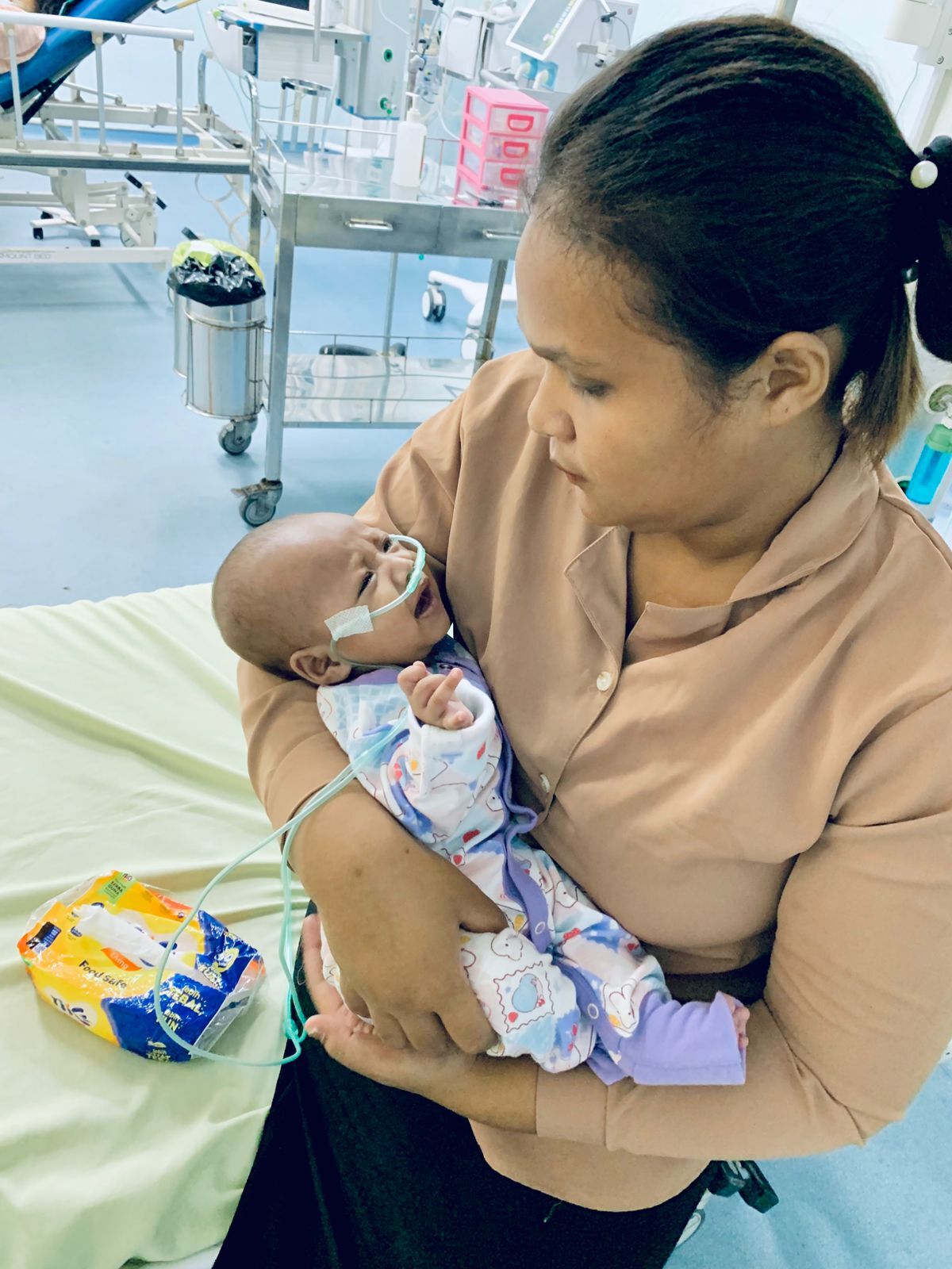 Bahkan, pernah ada masa ketika anakku harus dirawat di rumah sakit tanpa memakai popok, karena kami benar-benar tidak mampu membelinya. Namun di tengah keterbatasan itu, aku percaya Tuhan tidak pernah diam dan aku tak akan pernah menyerah demi kesembuhan anakku.