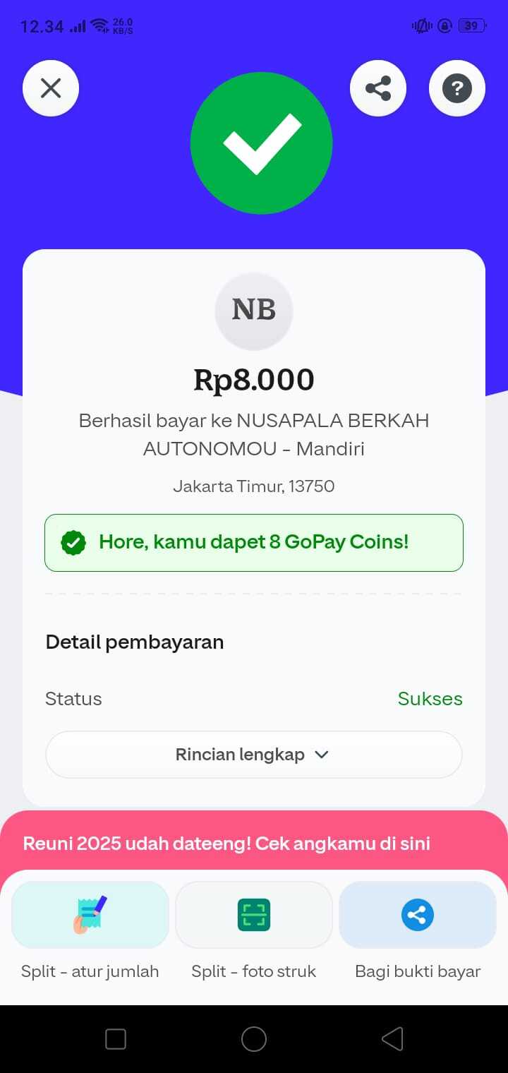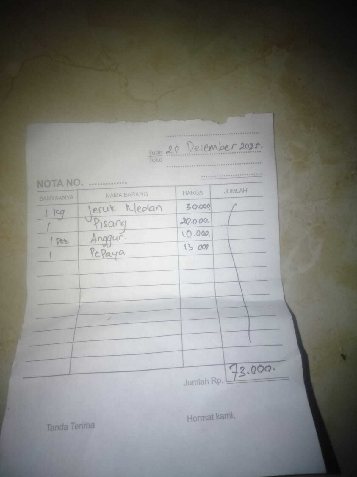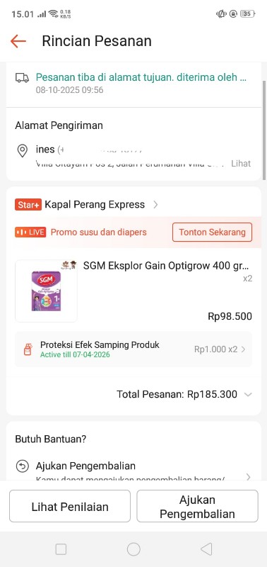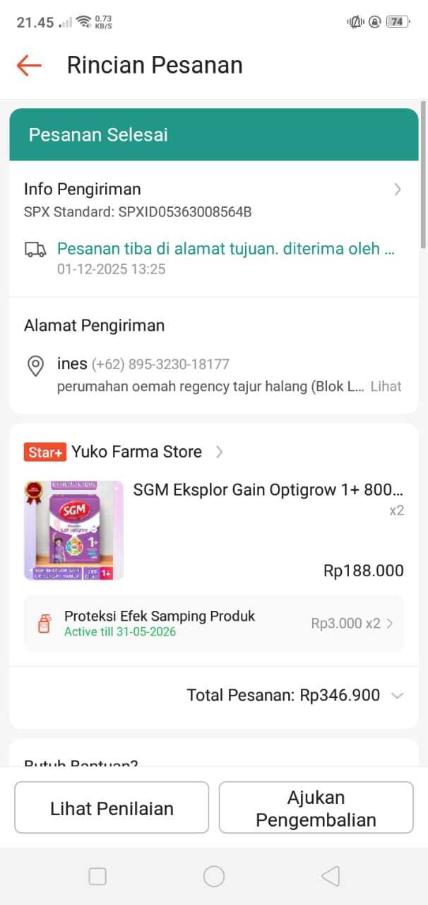 Dana digunakan untuk 1. Susu sgm optigrow 800gr 2 pack Rp180.000 x 2 = Rp360.000 2. Pampers Rp50.000 x 3 = Rp150.000 3. Buah-buah Rp250.000 4. Konsumsi kontrol Rp237.0002025-10-27 10:35:31