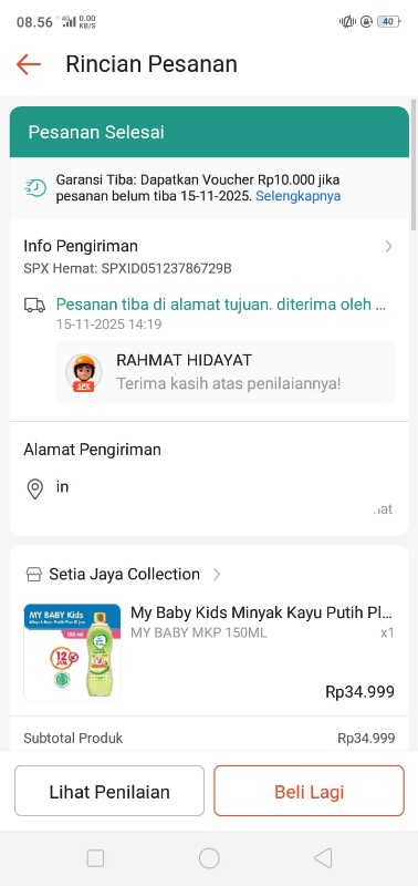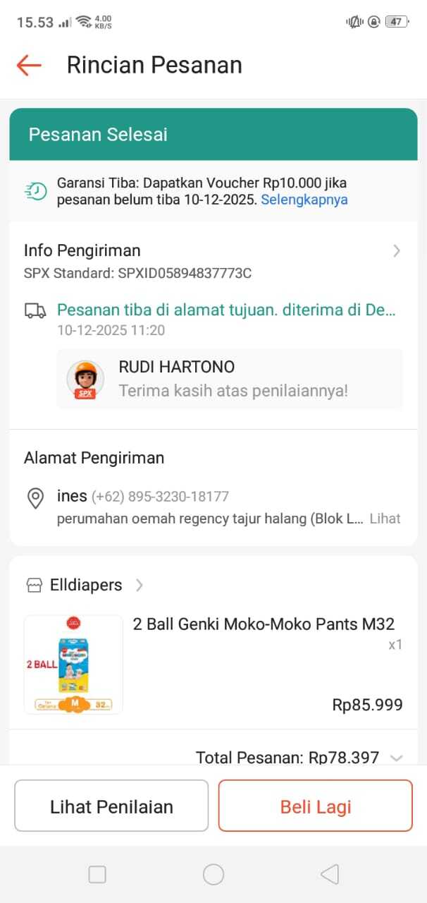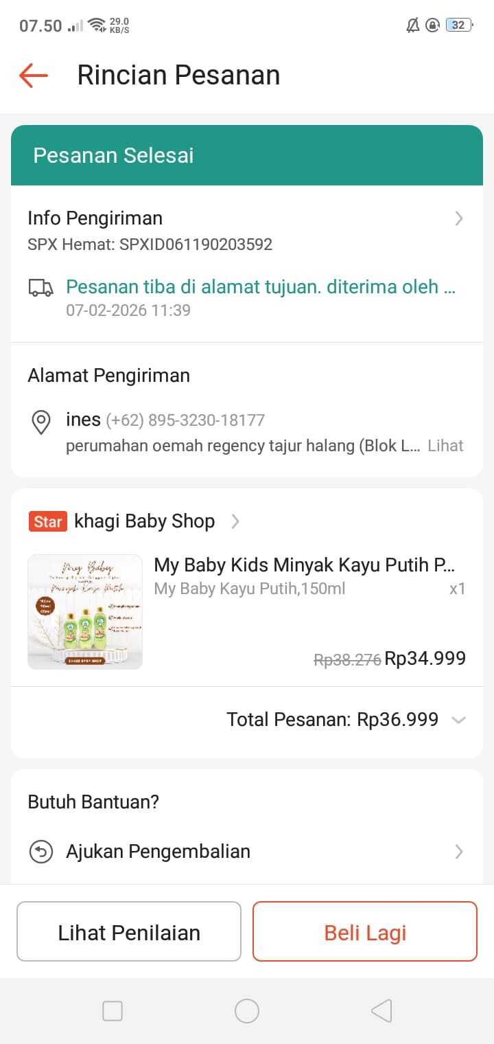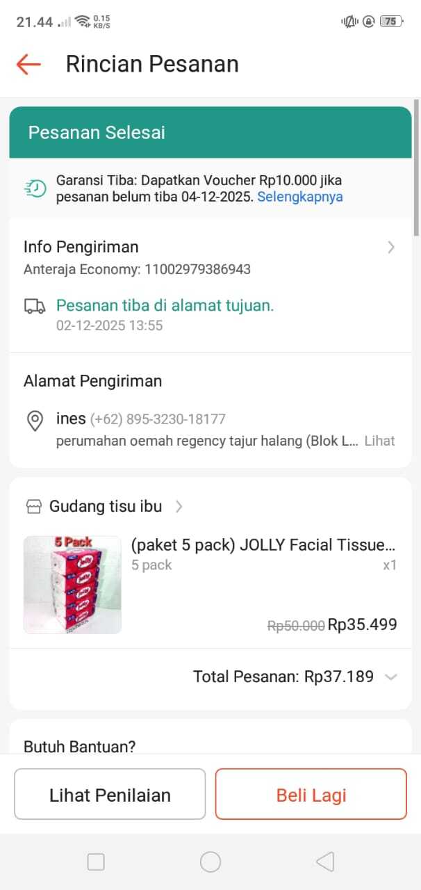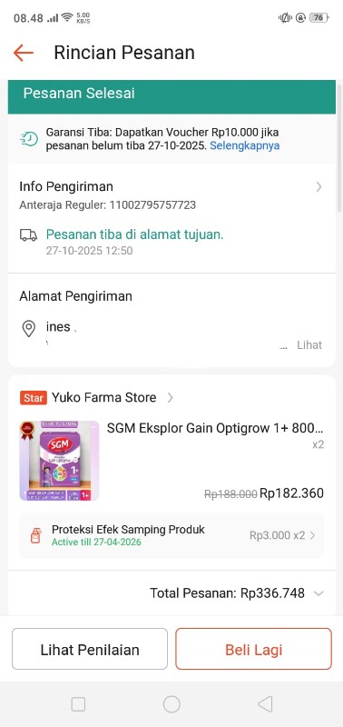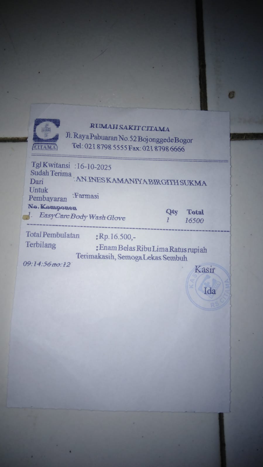 Adapun pencairan donasi batch 1 sebesar Rp250.000 telah digunakan untuk membeli kebutuhan Ines. Terlampir nota pembelian pampers secara offline di Indomaret dan pembelian susu secara online.
