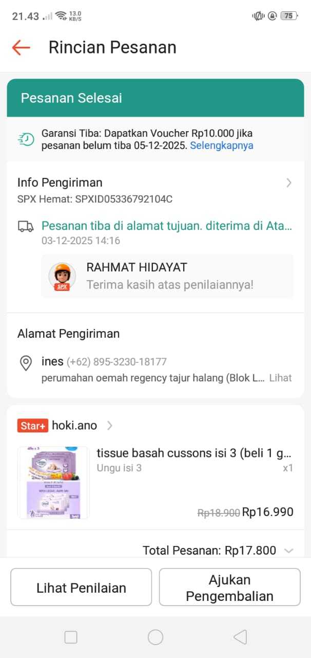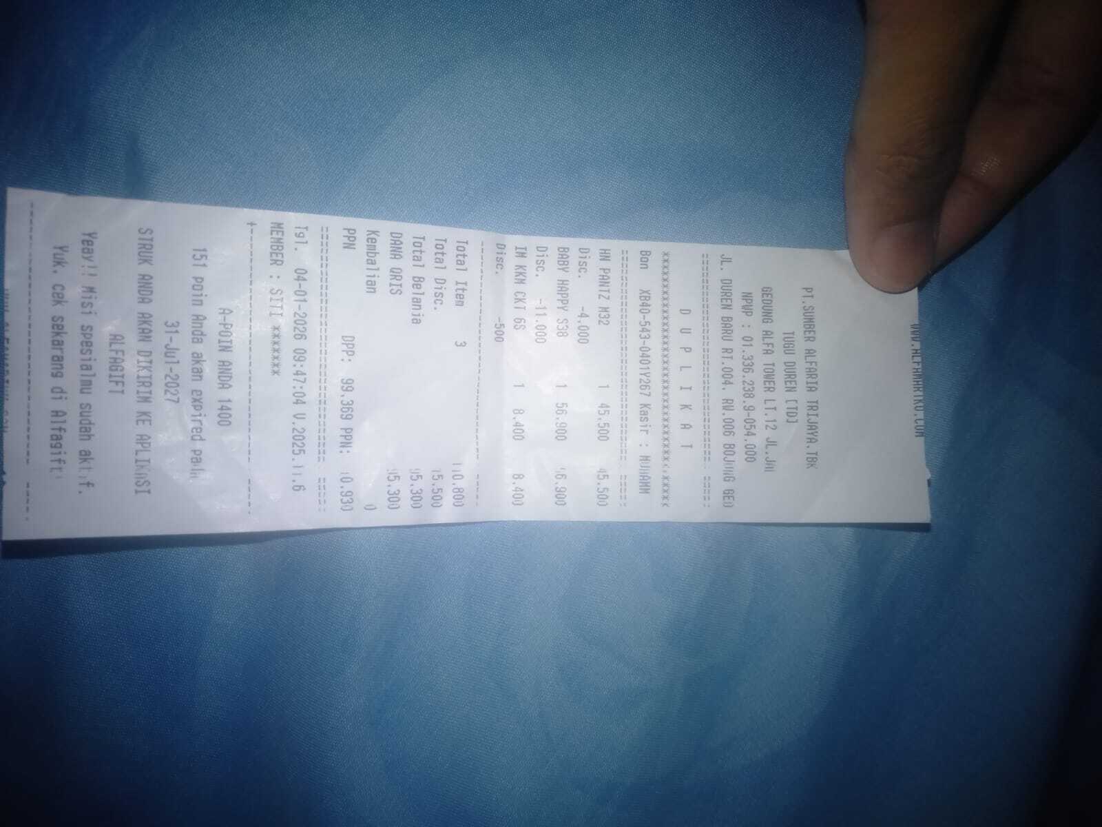 Dana digunakan untuk 1. Pampers moko moko Rp50.000 x 3 ball = Rp150.000 2. Susu sgm optigrow ukuran 800gr x 2 pack = Rp350.000 3. Transportasi (parkir & bensin) kontrol fisioterapi ke rs hermina PP Rp.300.000 4. Buah-buah Rp300.0002026-02-23 10:04:46