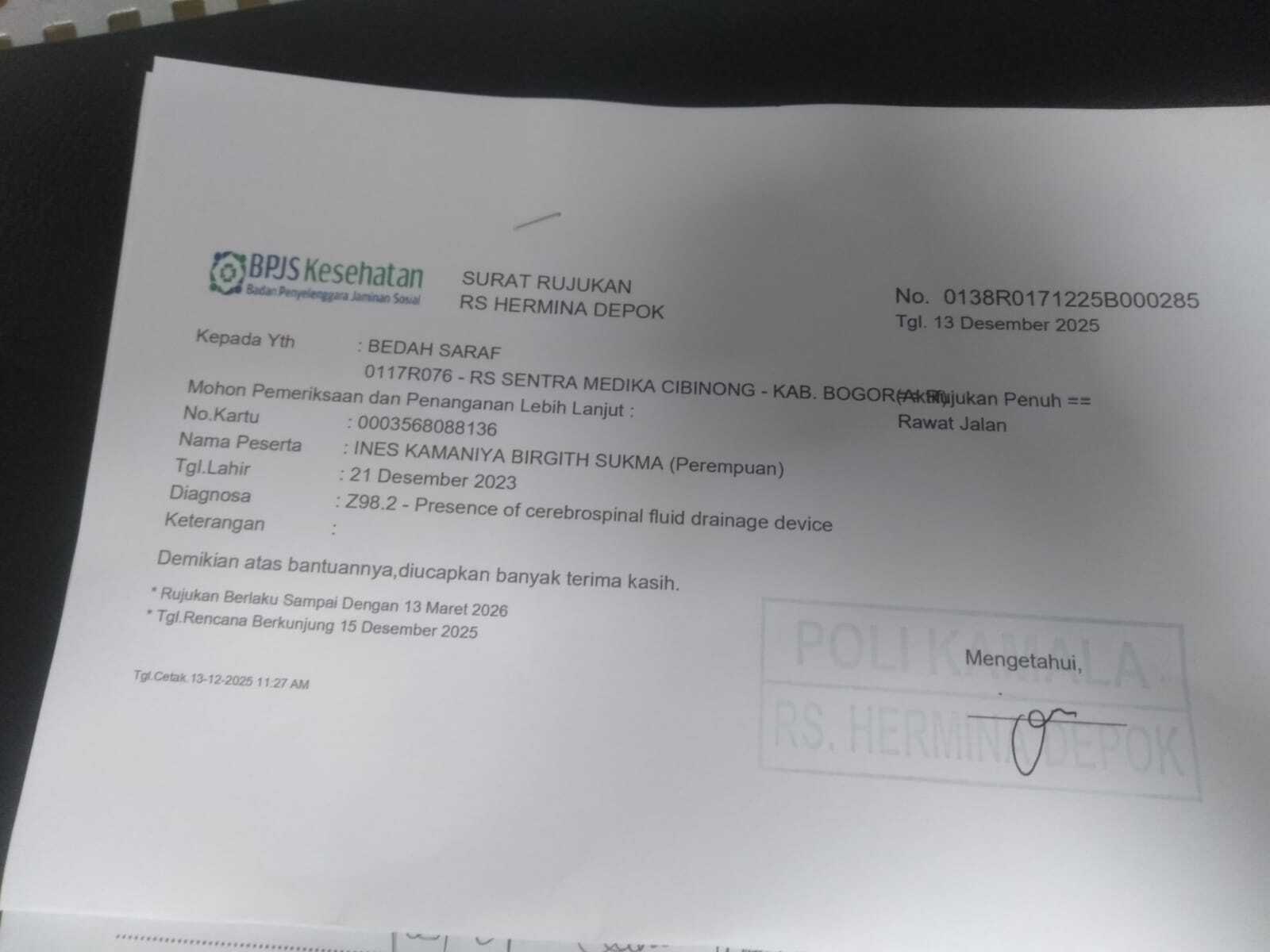 Kepada para #TemanBaik yang terhormat, terima kasih atas bantuan yang telah diberikan kepada anak kami, Ines. Pada 24 November 2025 ini, saya sebagai ibu Ines ingin menyampaikan perkembangan kesehatan terkini.