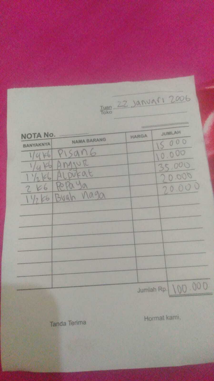 Di kesempatan ini, kami juga ingin menyampaikan bukti penggunaan dana donasi pada pencairan terakhir, yang telah kami pergunakan untuk pembelian susu, buah, dan kebutuhan lainnya.