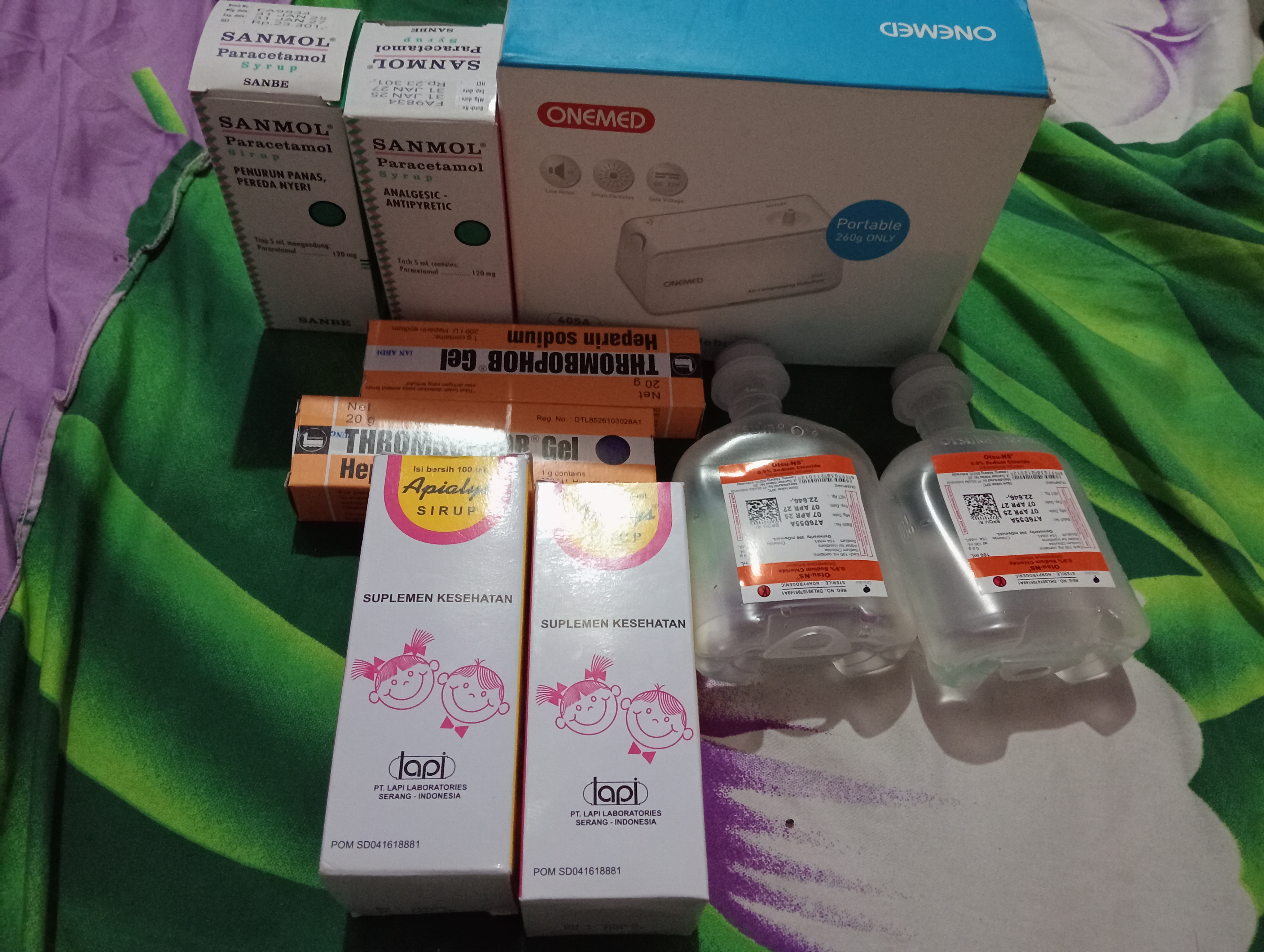 Dana digunakan untuk 1. Buah-buahan Rp300.000 2. Sanmol anak Rp23.000 x 2 = Rp46.000 3. THROMBOPHOB Rp75.000 x 2 = Rp150.000 4. NACL Rp12.000 X 2= Rp24.000 5. APIYSH SIRUP Rp23.000 X2 = Rp46.000 6. Nebulizer Rp350.0002025-10-13 09:12:48