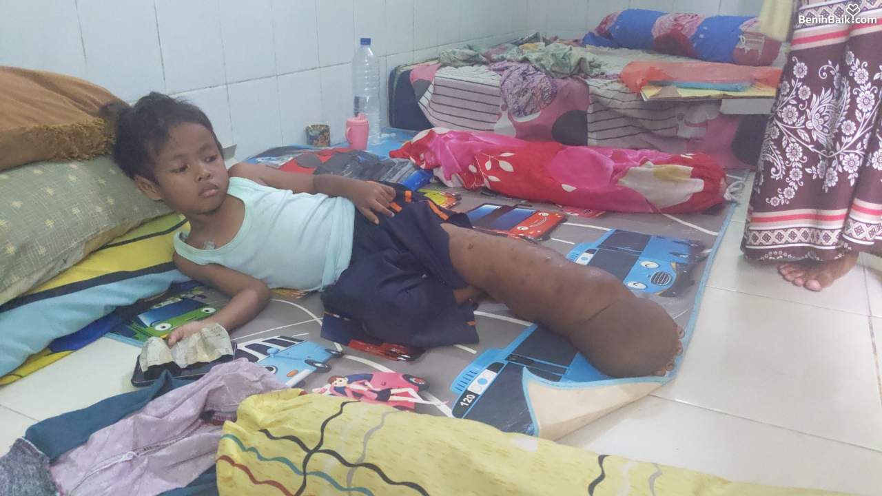 Sudah 3 tahun, anakku menderita haemangioma dan belum ada penanganan operasi. Sekarang anakku cuma terbaring lemah, seluruh kakinya masih sakit dan nggak bisa dipakai untuk jalan. Aku cuma khawatir, kalau tumor di kakinya bisa menyerang organ lain yang mengancam keselamatannya.