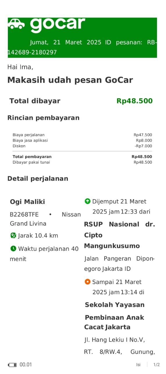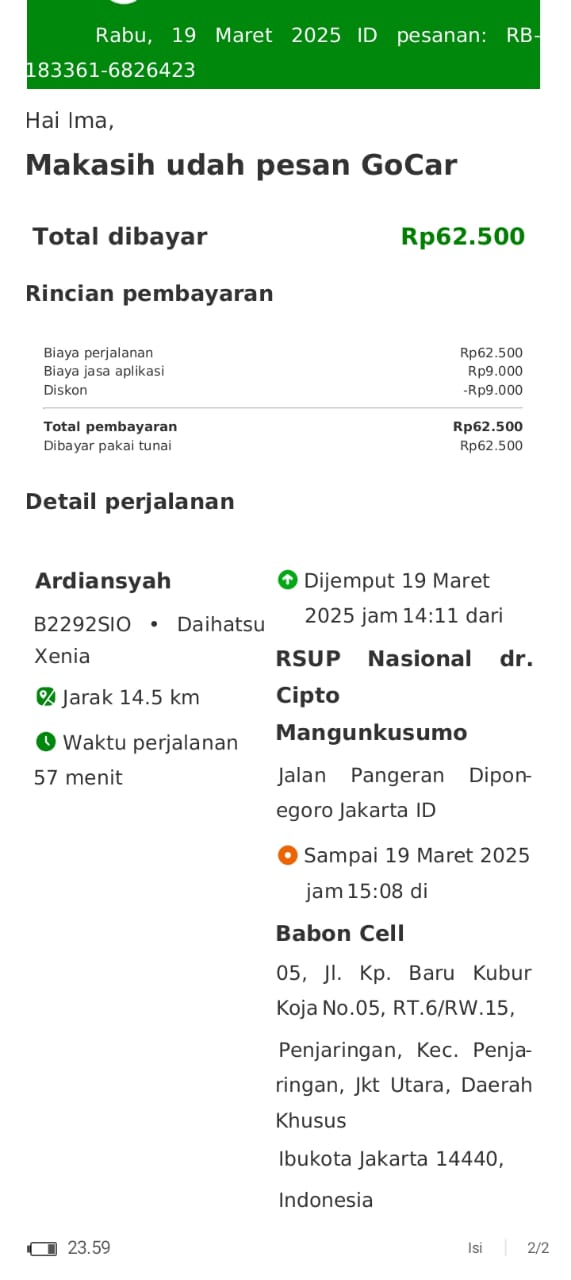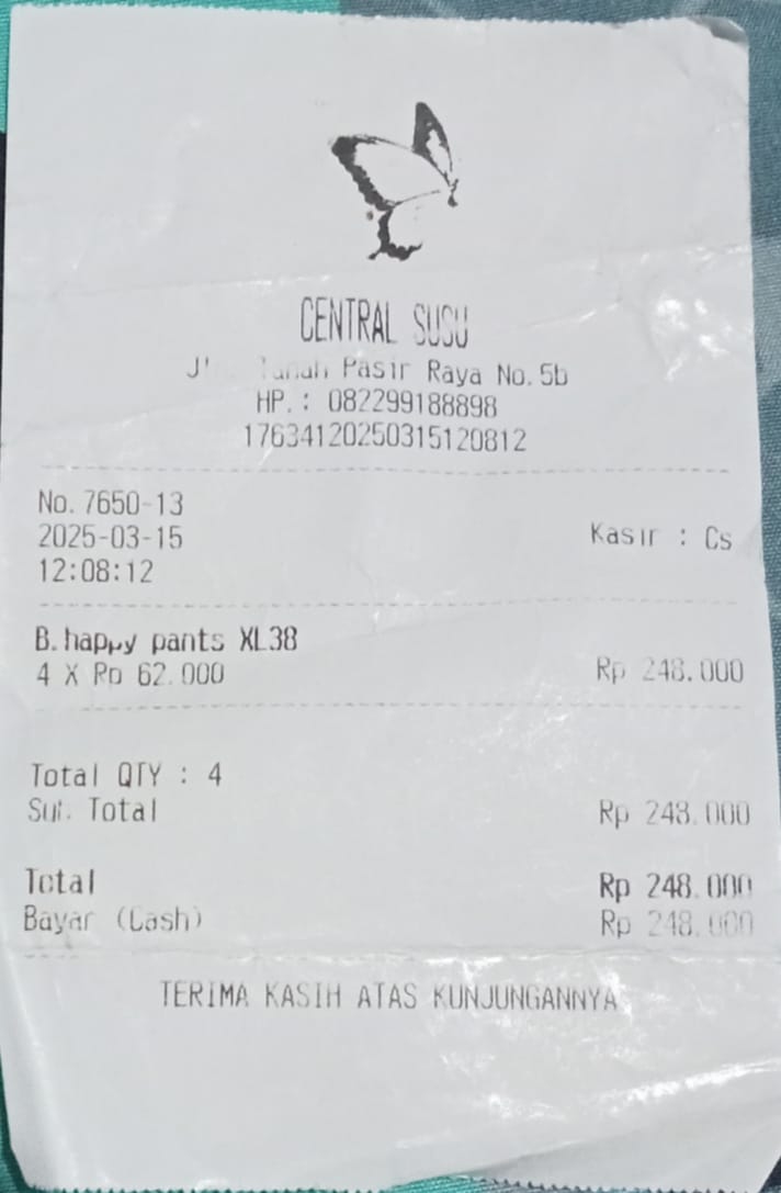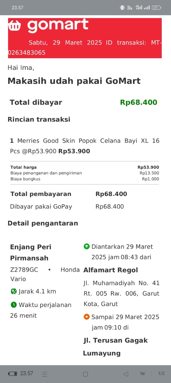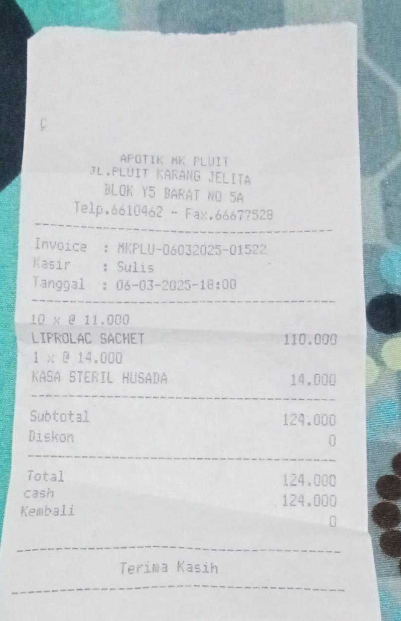 Dana digunakan untuk 1. Susu ketocal 1 kaleng Rp400.000 x 4 kaleng = Rp1.600.000 2. Pampers Baby happy Uk. XL Rp134.0312025-03-14 09:00:55