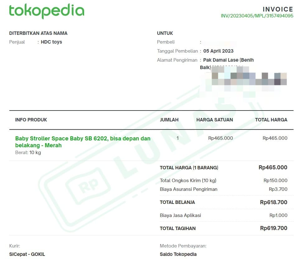 Dana digunakan untuk pembelian stroller.2023-03-28 17:12:19