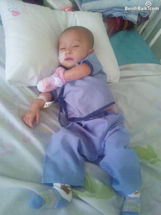 Saat usia 5 bulan menjadi kondisi terlemahnya, berat badannya merosot drastis! Bayangkan saja, Ia hanya 3,7 Kg dari seharusnya 7 Kg. Ia bagai benda rapuh yang gampang pecah ketika tersenggol. Belum lagi nafasnya naik turun dengan begitu cepat, tak seperti orang normal.