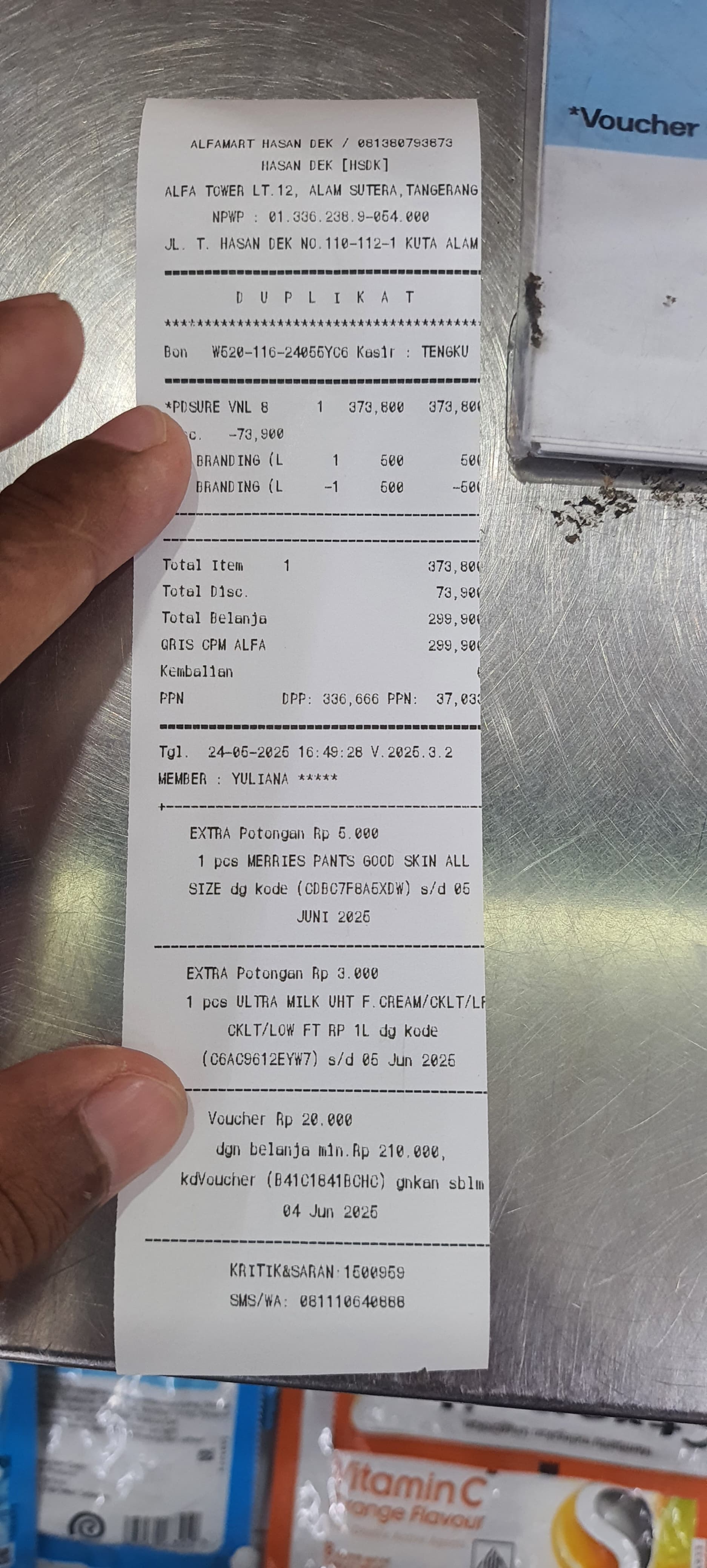 Dana digunakan untuk 1. Susu pediasure 2dus Rp380.000 2. Pampers merries Rp145.0002025-03-10 15:28:14