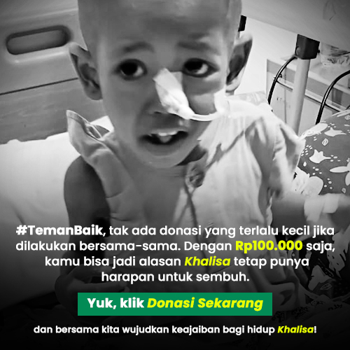 #TemanBaik, tak ada donasi yang terlalu kecil jika dilakukan bersama-sama. Dengan Rp100.000 saja, kita bisa jadi alasan Khalisa tetap punya harapan untuk sembuh. Yuk, klik Donasi Sekarang dan bersama kita wujudkan keajaiban bagi hidup Khalisa!