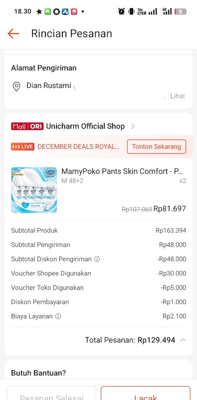 Pampers MamyPoko M48 (2 ball) (dalam perjalanan, estimasi tiba 25 Desember)