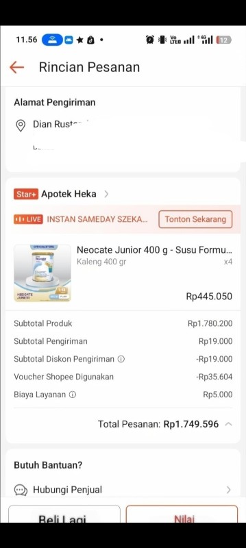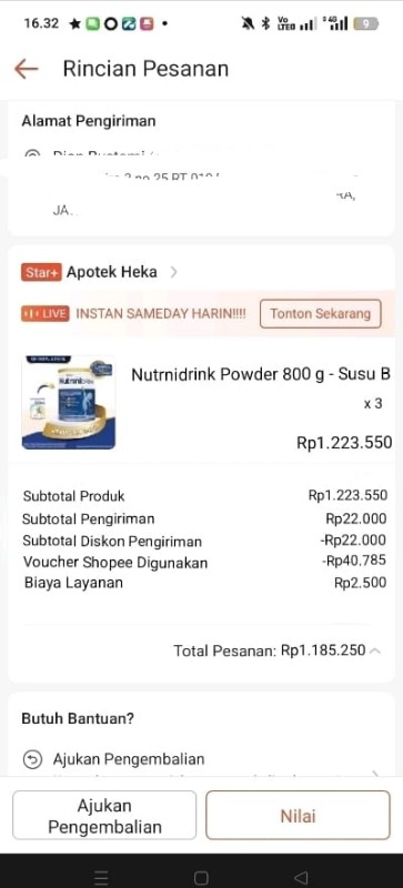 Dana digunakan untuk 1. Susu Nutrnidrink 6 kaleng 800 gr Rp2.390.000 2. Hypafix perban NGT Rp48.000 3. Ngt fr8 100 cm 2 Rp50.000 4. Spuit 20 ml 20pcs Rp45.000 5. Pampers Mamy pokok M 2 ball Rp160.000 6. Tisu basah 4 pack Rp50.000 7. Liprolac baby drop Rp285.000 8. Tempra Paracetamol Rp45.000 9. Transportasi online ke RS pp Rp200.0002025-12-23 11:18:23