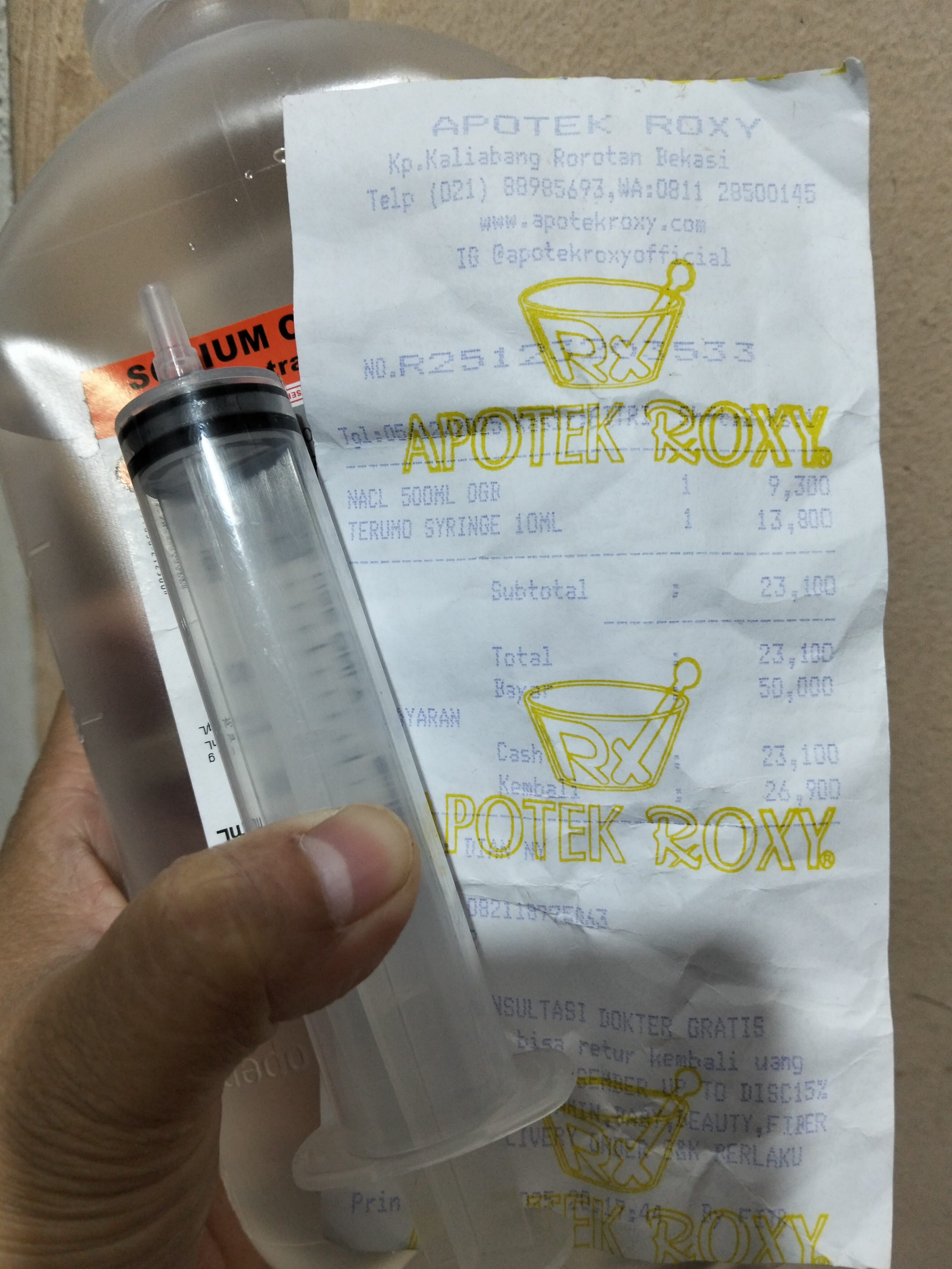 Spuit 20 ml (21 pcs) dan Hypafix/plester NGT (2 pcs) (dalam perjalanan, estimasi tiba 26–27 Desember)