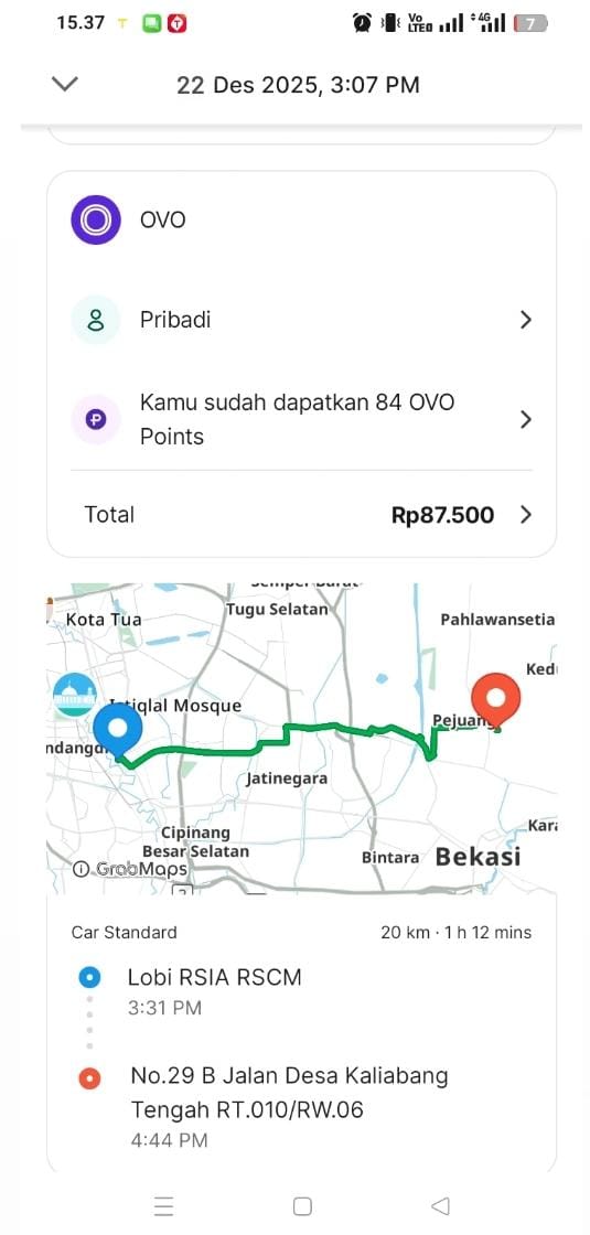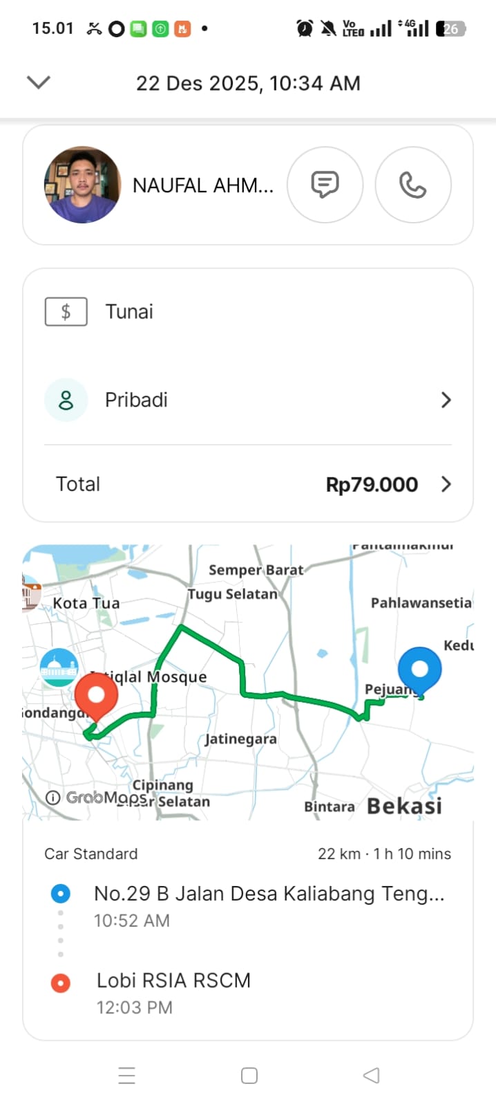 Transportasi Grab pulang-pergi rumah sakit serta tambahan tol pulang-pergi Rp60.000