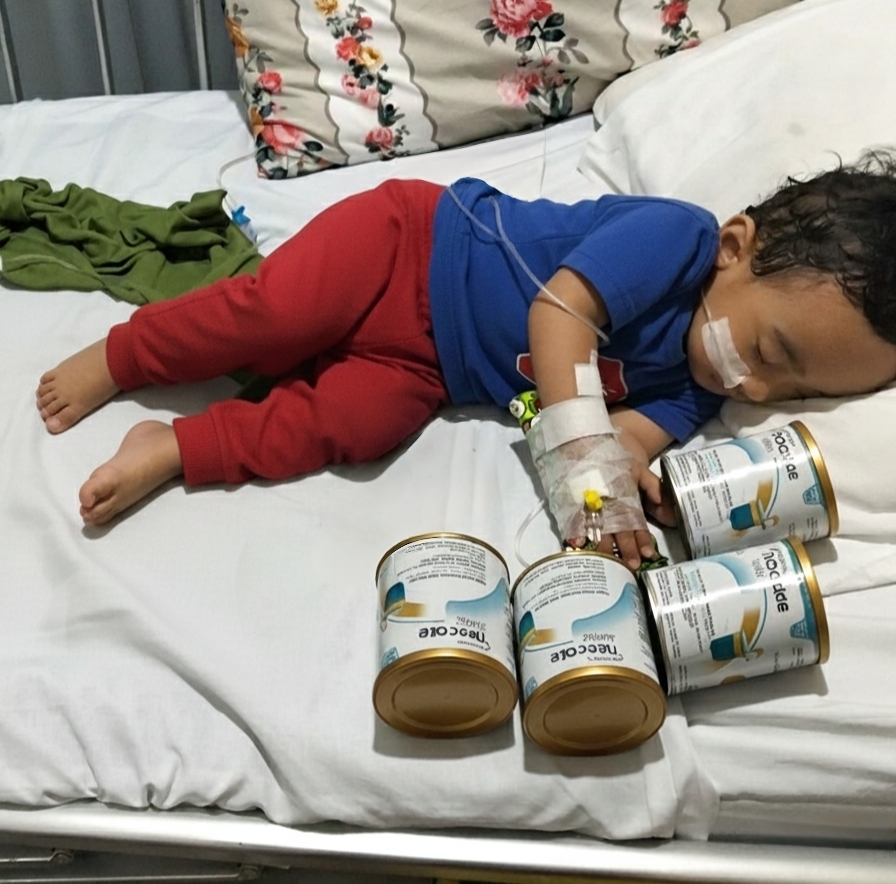 Cobaan tak berhenti di situ, setelah dipasang NGT, muntahnya justru semakin parah. Aku sempat memberinya susu alergi, berharap ada perubahan. Tapi anakku tetap tersiksa oleh muntah yang tak kunjung reda.
