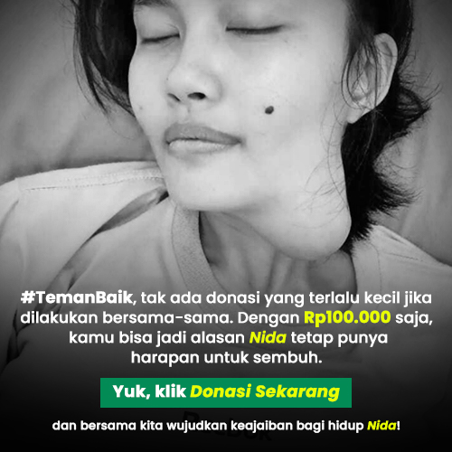 #TemanBaik, tak ada donasi yang terlalu kecil jika dilakukan bersama-sama. Dengan Rp100.000 saja, kita bisa jadi alasan Nida tetap punya harapan untuk sembuh. Yuk, klik Donasi Sekarang dan bersama kita wujudkan keajaiban bagi hidup Nida!