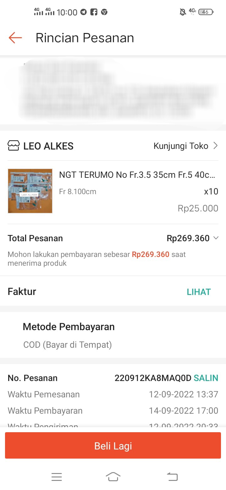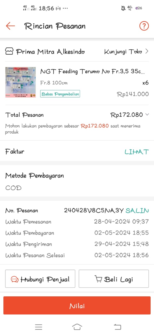Dana digunakan untuk membeli Selang NGT Rp23.500 x 6pcs = Rp 141.000 + ongkir Rp31.000