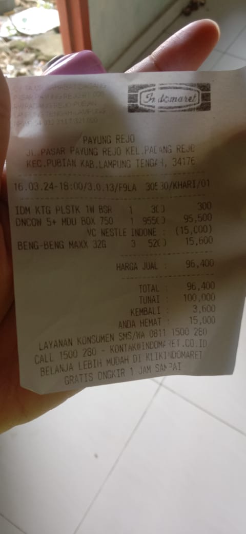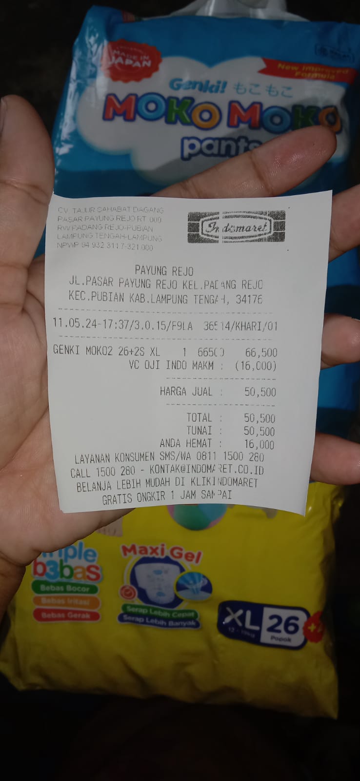 Untuk membeli pempes sama tisu basa dan kering rasya