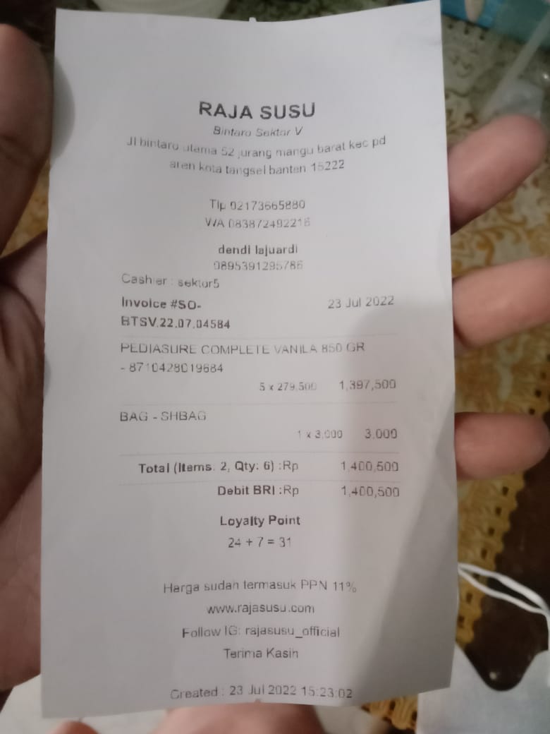 Dana digunakan untuk tambahan susu Pediasure 380gr