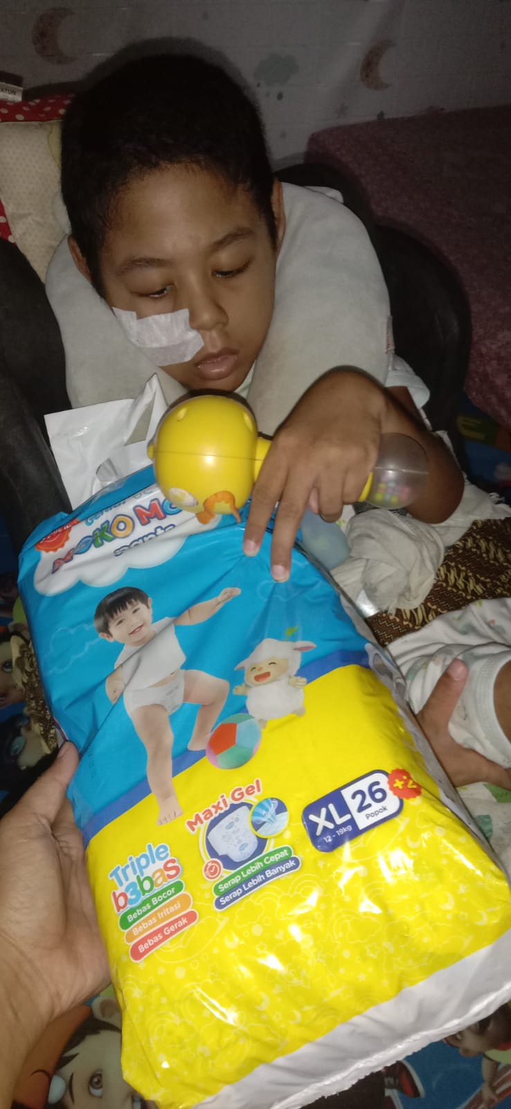 Oya bantuan dari #TemanBaik sudah digunakan untuk membeli selang NGT dan obat demam serta pampers.