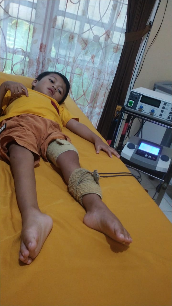 Selamat pagi teman teman.  Sudah hampir 1 tahun Maher tidak bisa jalan akibat kemoterapi kakinya mengecil dan pergelangan kakinya nya bengkok ke bawah sudah melakukan fisioterapi dan akupuntur . . Maher membutuhkan kan sepatu boot terapi untuk meluruskan kembali pergelangan kakinya dan lampu infrared untuk fisioterapi di rumah Agar saraf saraf di kaki maher bisa kembali seperti dulu