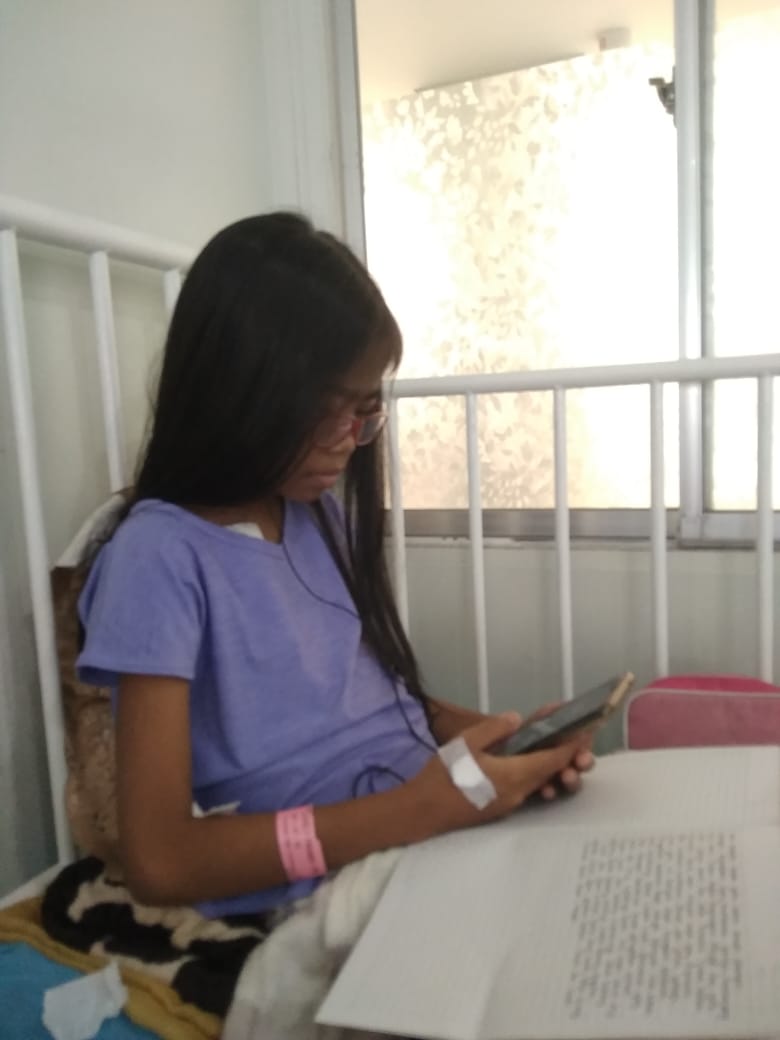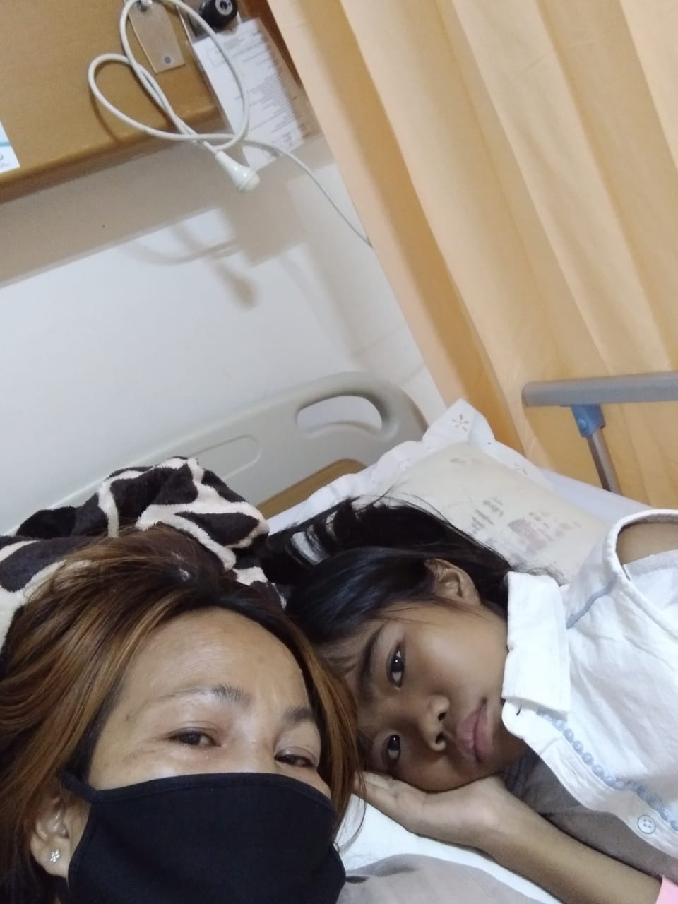 (Lovely kini menjalani pengobatan ditemani Kakaknya dan setiap saat ia selalu video call Mamanya karena selalu khawatir dan rindu)