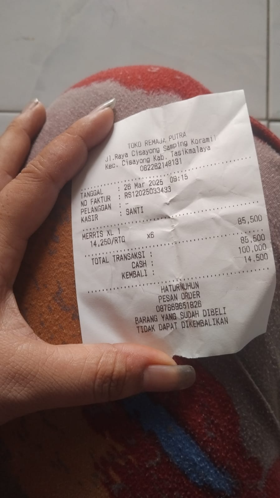 Dana bantuan dari TemanBaik yang sudah terkumpul, aku gunakan dengan baik untuk membeli kebutuhan anakku seperti susu, popok, minyak badan, dan bahan-bahan sembako lainnya.