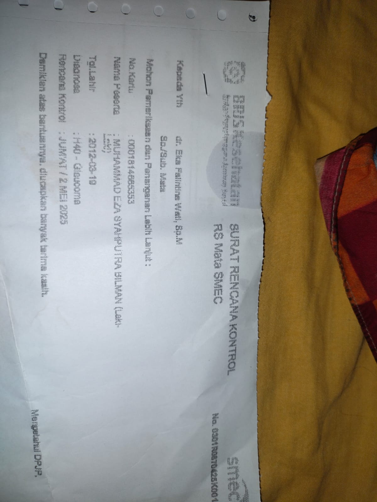 Untuk saat ini Eza hanya dibawa kontrol ke rumah sakit mata terdekat saja. Eza juga masih harus mengkonsumsi obat glaukoma. Mohon bantu doa dan dukungannya ya #TemanBaik agar Eza dapat segera sembuh dari sakitnya.